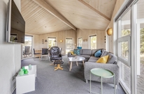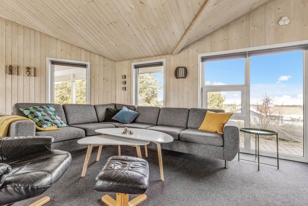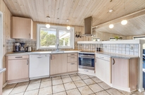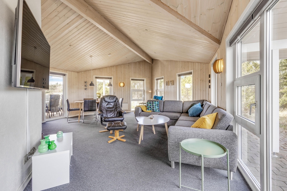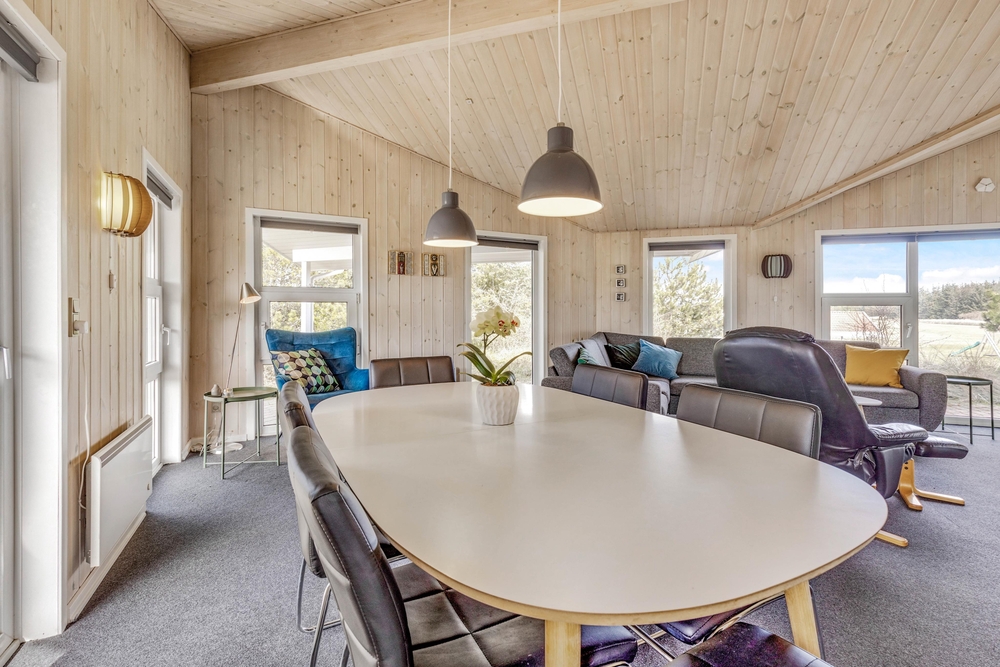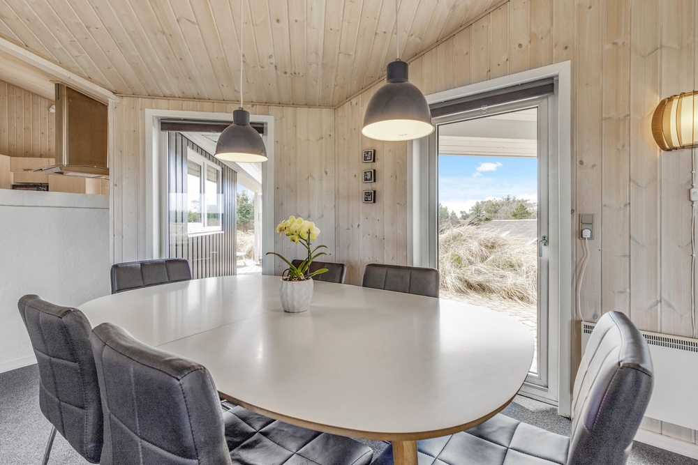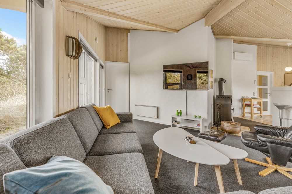Jeres samlingspunkt og hjertet i feriehuset er alrummet, hvor køkken, stue og spiseplads ligger i åben forbindelse. Her har I både mulighed for at slappe af og nyde hyggelige feriestunder med hele familien. Om I laver mad, spiller spil eller ser film, sørger brændeovnen for at fuldende feriestemningen med sine knitren og varme.