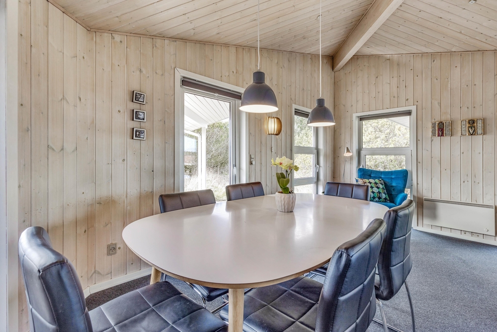 Skal programmet på jeres næste ferie være fyldt med afslapning? Så tag et kig på dette skønne feriehus på Engesøvej 119 i Vejers. Det skønne sommerhus byder nemlig på både et spabad og en sauna, der kan forkæle jer med masser af afslapning på jeres næste ferie! Sommerhuset rummer plads til op til 6 personer.