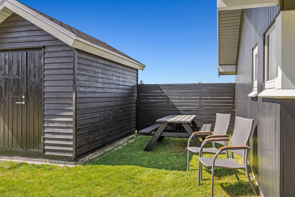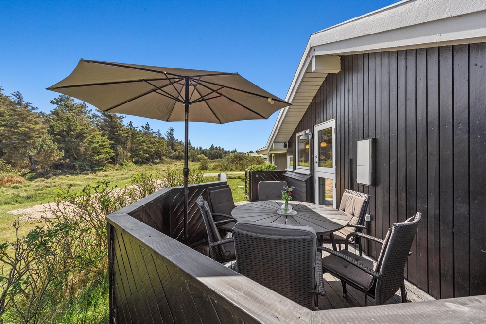Feriehuset er beliggende på en dejlig naturgrund, som grænser op til et stort grønt skovareal. Her har I rig mulighed for at nyde udelivet, uanset om I ønsker at nyde solen på den afskærmede terrasse eller holde en skøn grillaften på den overdækkede terrasse ? mulighederne er mange!