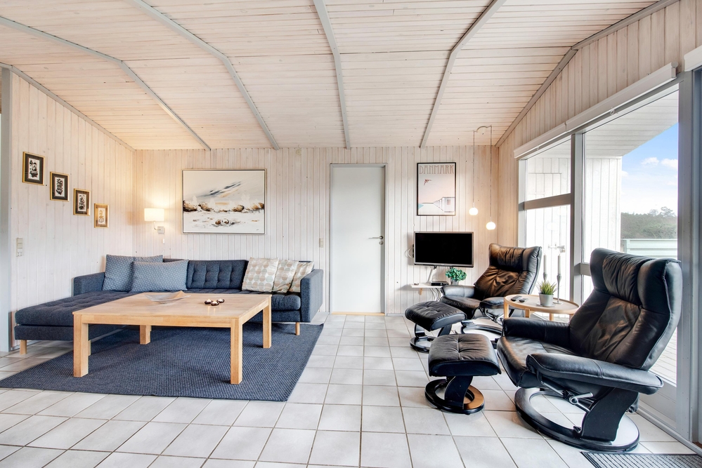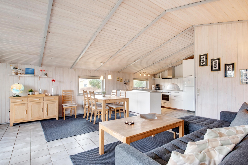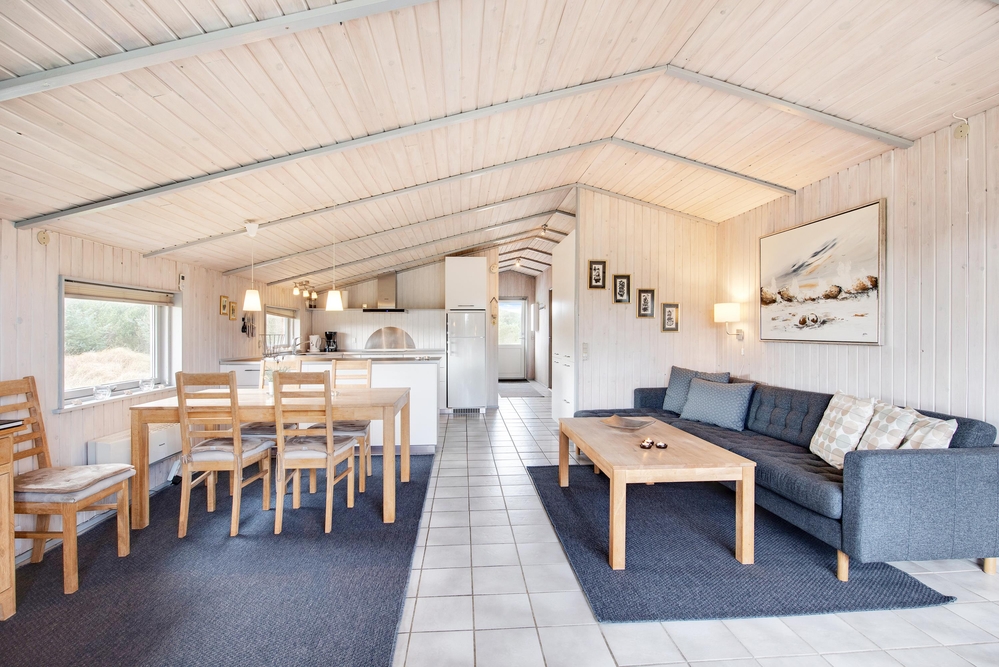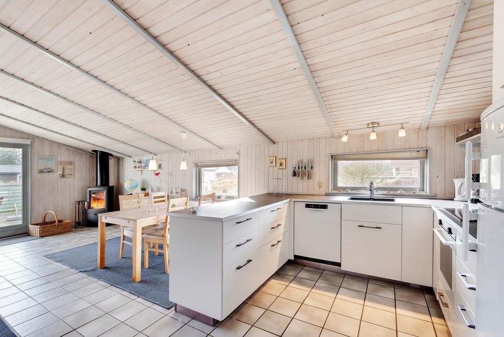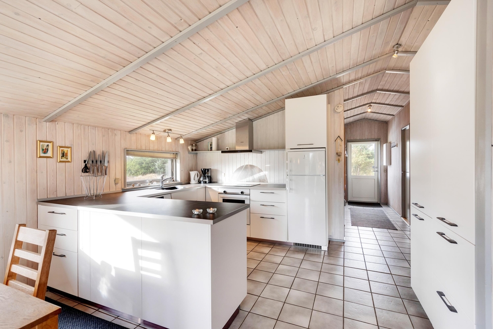 På knap 100 m2 får I alt, hvad der skal til for rigtigt at kunne hygge sig og holde ferie. Vaskemaskinen, tørretumbleren og naturligvis opvaskemaskinen klarer dagens ubekvemme opgaver, så der er masser af tid til lange gåture i den skønne omegn og på den endeløse strand, ? eller til bare at flade ud på liggestolen.