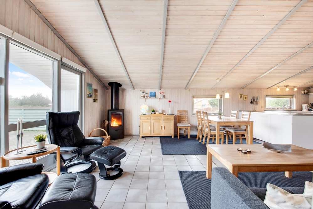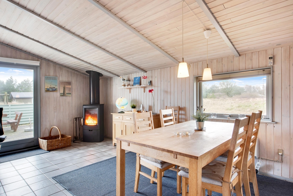 Det velholdte hus er løbende blevet renoveret, og har i 2019 fået et nyt lækkert køkken, som er åbent til stue-alrummet. I stuen er der brændeovnen og hele huset lægger således op til op til hyggelig samvær ? med fælles madlavning, familiespil ved spisebordet eller måske sofahygge over en god spillefilm. Den energibesparende luft-varmepumpe holder huset godt varmt, men for ekstra hyggestemning, kan I tænde op i husets brændeovn. Huset har også Chrome-cast.