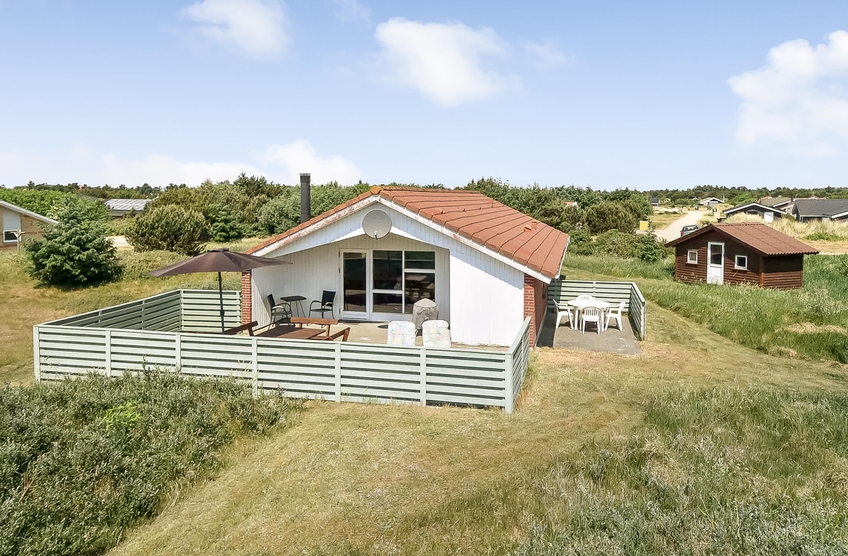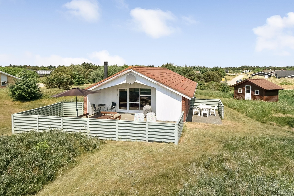 På en dejlig stor lys naturgrund tæt på skov og strand ligger dette dejlige feriehus. Her er der god plads til hele familien eller til op til 3 vennepar, som gerne vil nyde et par feriedage i den hyggelige strandby Vejers.