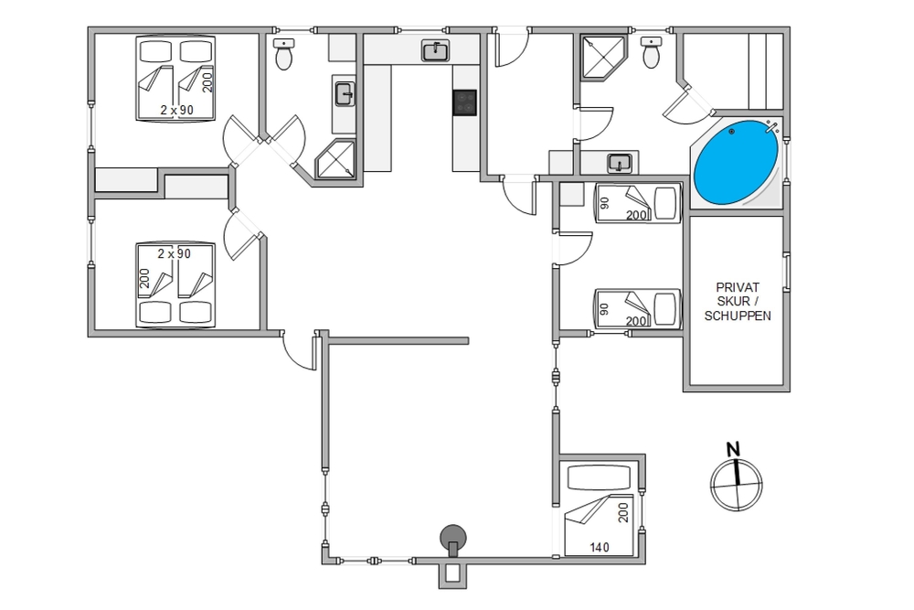 I sommerhuset er der desuden hele 2 badeværelser, så I slipper for at skulle stå i kø fra morgenstunden. Begge badeværelser er udstyret med gulvvarme, så I også slipper for at fryse fødderne.