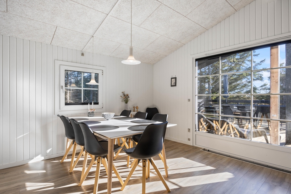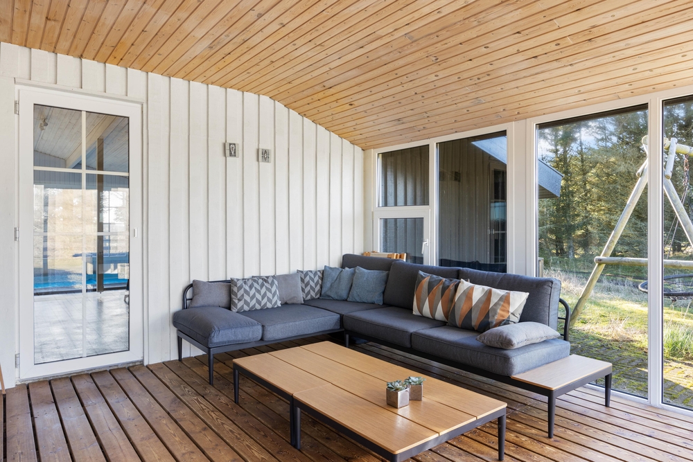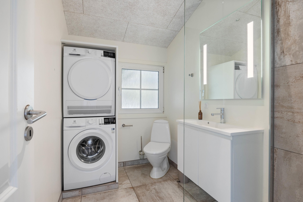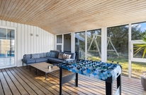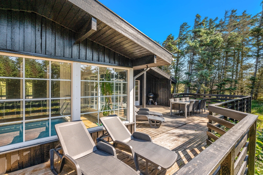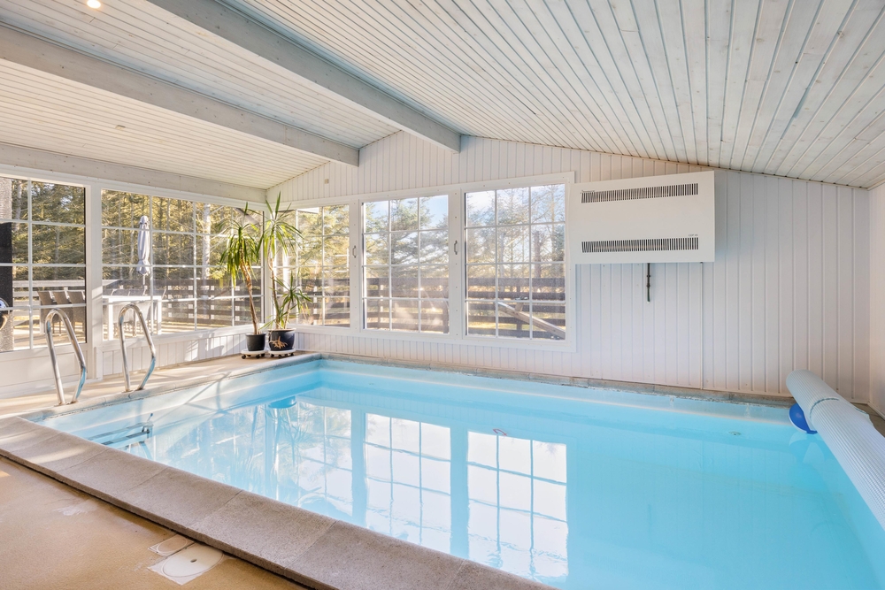 Fra poolrummet er der udgang til feriehusets hyggelige udestue, hvor I kan sætte jer med aftenkaffen eller læse en god bog i fred og ro. Feriehuset har også både vaskemaskine og tørretumbler til rådighed, så I altid har rent og tørt tøj. Det er også muligt at opvarme huset med den energibesparende luft til luft varmepumpe.