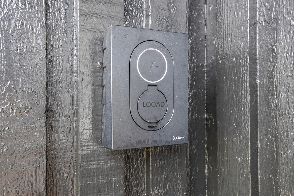 Udenfor finder I også et ladedstik til en el-bil med 11 kW og 3 faser, så I hurtigt kan få strøm på bilen.