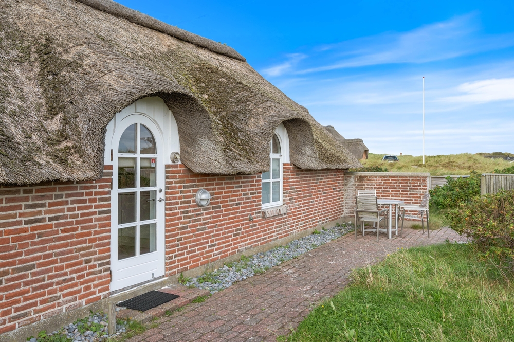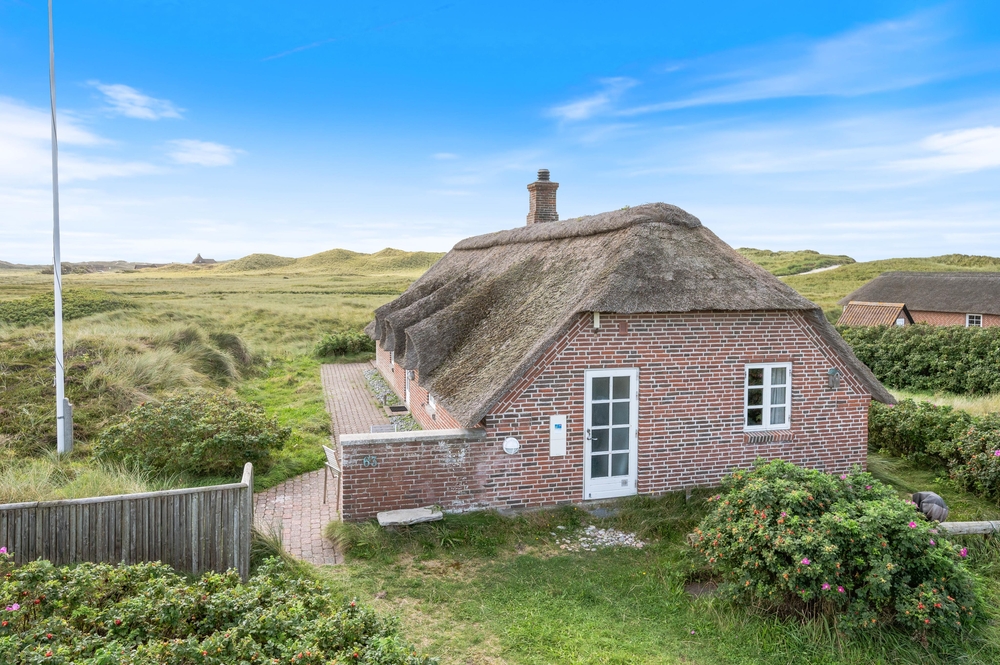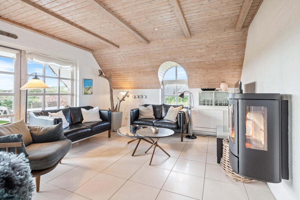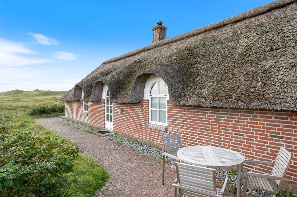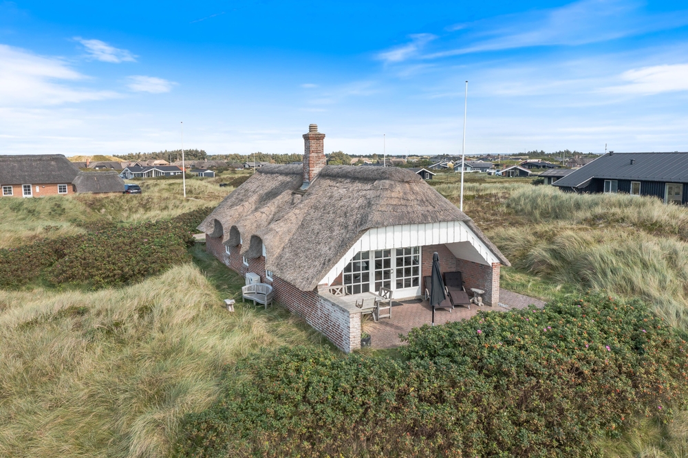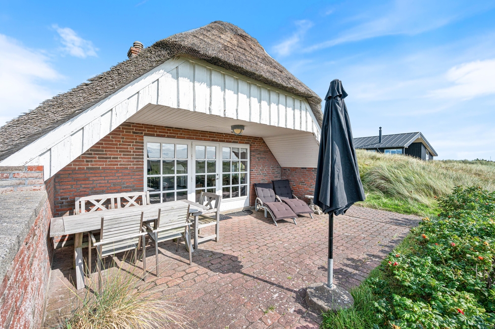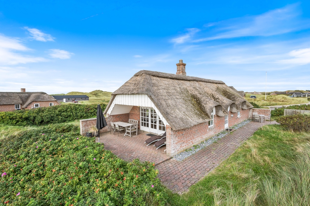 Med førsteklasses beliggenhed ud til hedearealer og kun 2 minutters gang fra stranden ligger dette smagfulde og velindrettede feriehus. Her kan du helt uforstyrret nyde ferien i fantastisk dejlige omgivelser ? både inde og ude. Fra terrassen er der panoramaudsigt og man kan høre Vesterhavet.