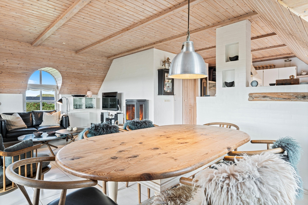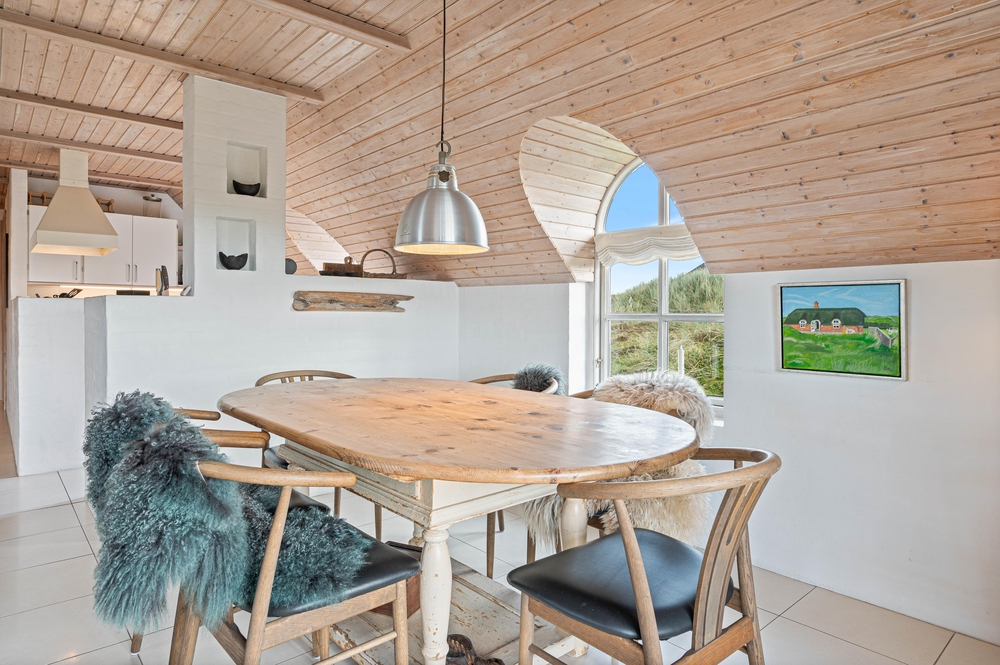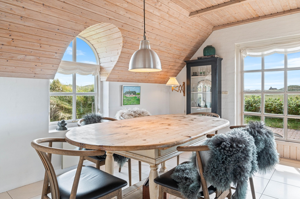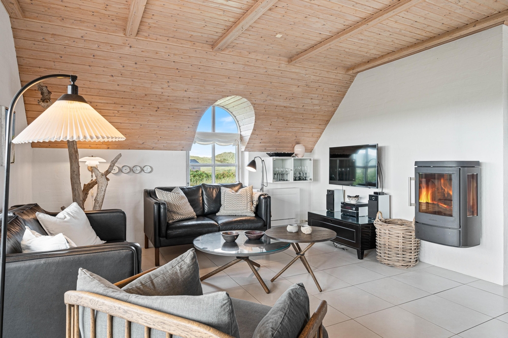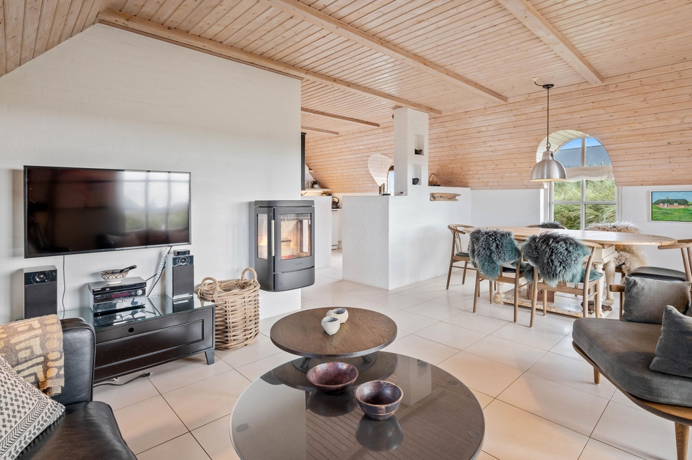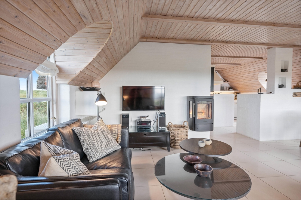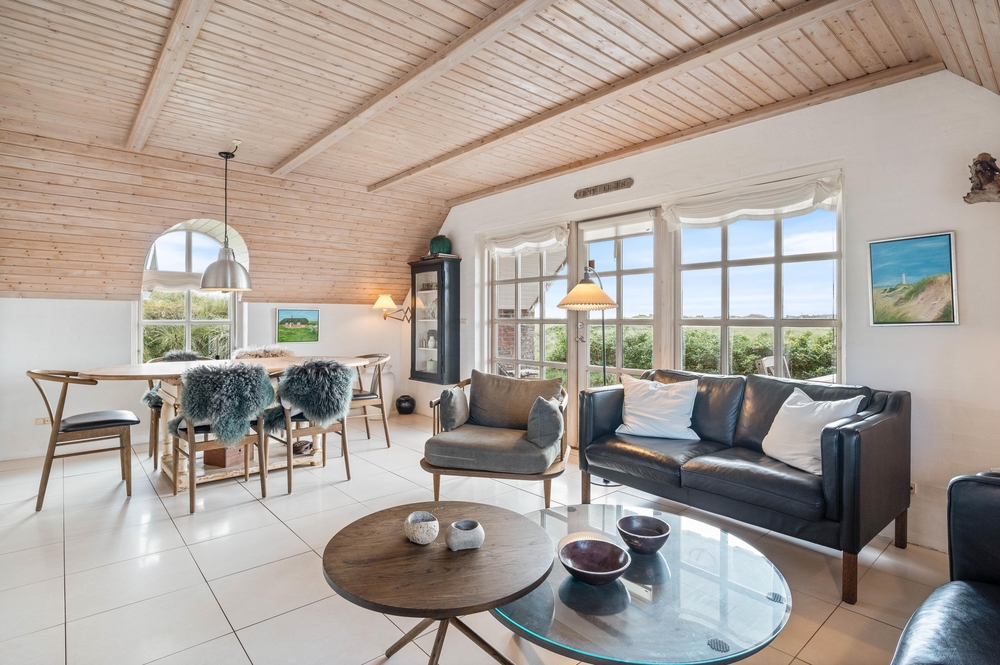 Med førsteklasses beliggenhed ud til hedearealer og kun 2 minutters gang fra stranden ligger dette smagfulde og velindrettede feriehus. Her kan du helt uforstyrret nyde ferien i fantastisk dejlige omgivelser ? både inde og ude. Fra terrassen er der panoramaudsigt og man kan høre Vesterhavet.