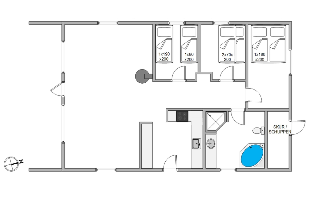 Her har man mulighed for at holde ferie i skønne og helt rolige omgivelser og samtidigt bo i et smagfuldt indrettet feriehus, hvad mere kan man ønske sig? Der er mange flotte detaljer i huset, som er et gennemgående tema i indretningen overalt. Møbler, billeder og pynt er nænsomt sammensat og giver dette feriehus en unik atmosfære.