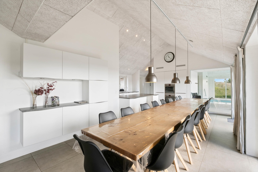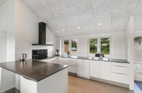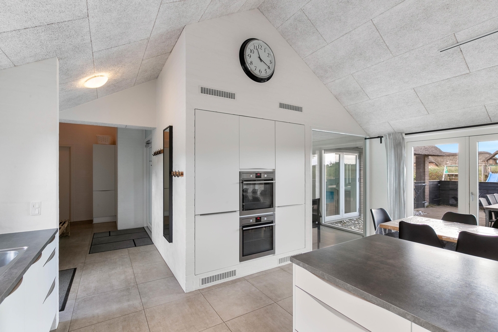 Det åbne og flotte køkken, er et oplagt sted at samles for madentusiasterne, hvor et lækkert måltid kan tilberedes til resten af familien eller vennerne. For at gøre madlavning bekvem og funktionel, er køkkenet udstyret med både to ovne og et stort komfur.