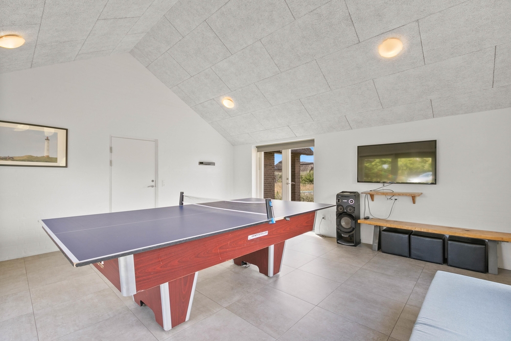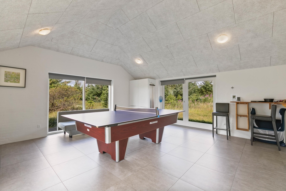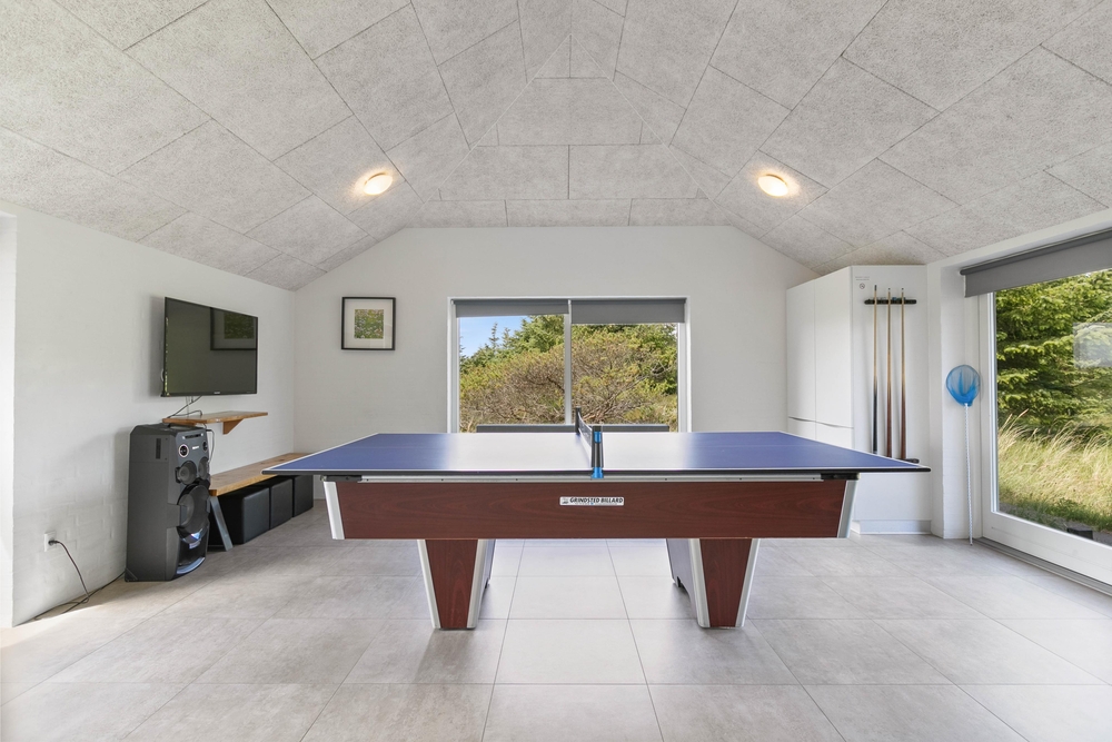 I feriehuset har I naturligvis spiseafdelingen og stuen, hvor I kan samles. Derudover er der også et dejligt aktivitetsrum med billardbord, bar og fladskærm. Her kan I hygge jer med spilaftener; uanset om det er en turnering i billard, bordtennis, brætspil, eller en dyst på den medbragte spillekonsol ? det er samværet, der giver de bedste ferieminder.