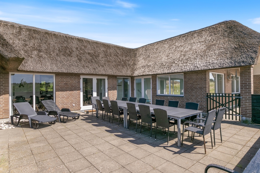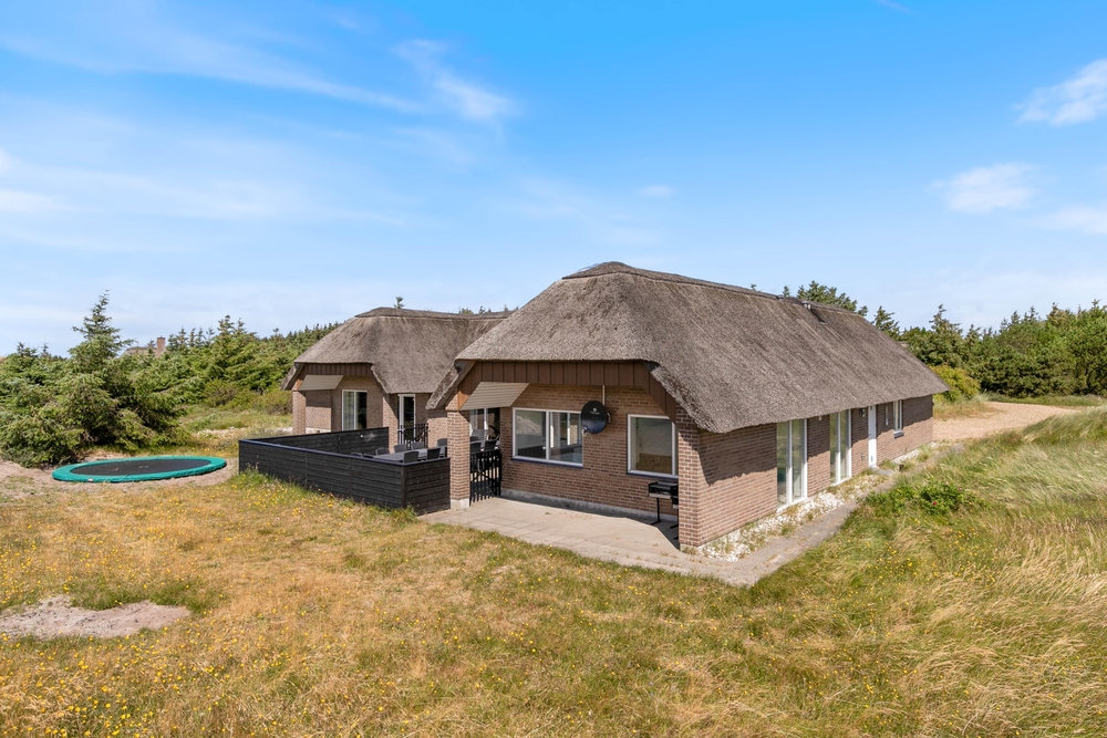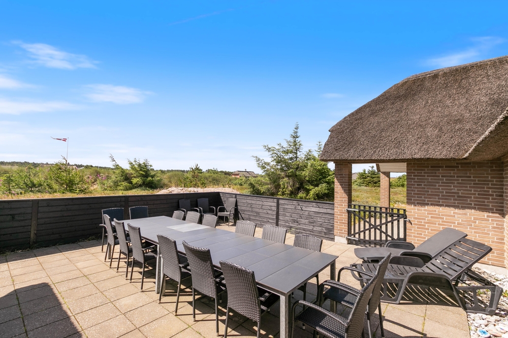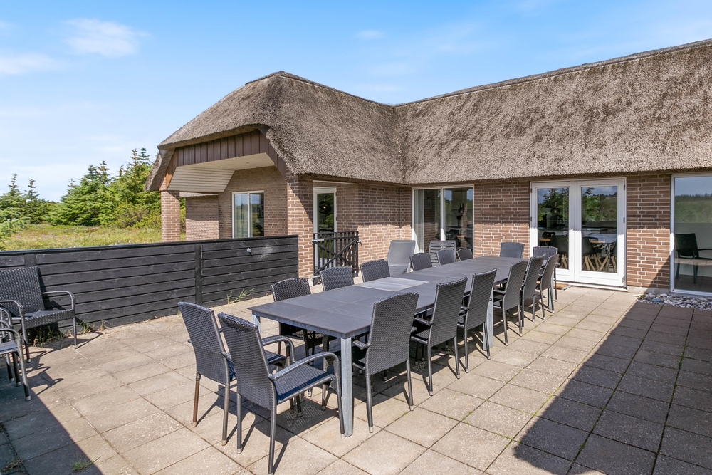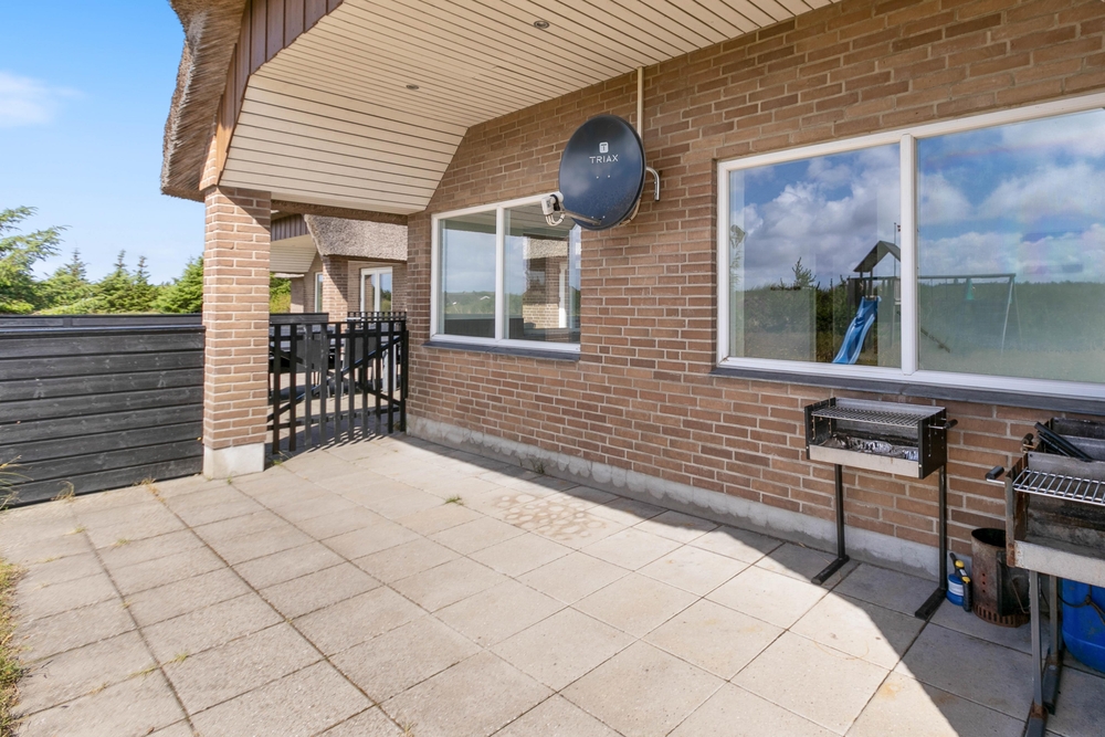 Udenfor råder feriehuset både over en åben, afskærmet og lukket terrasse, hvor I med fordel på de varmerme dage, kan nyde solens varme stråler og den friske luft. Intet er mere hyggeligt end en udendørs middag, hvor aftensmaden kan tilberedes på grillen samtidig med noget koldt til ganen. I kan roligt slappe lidt af og nyde jeres ophold i fulde drag imens jeres hunde og børn frit kan lege på den lukkede terrasse.