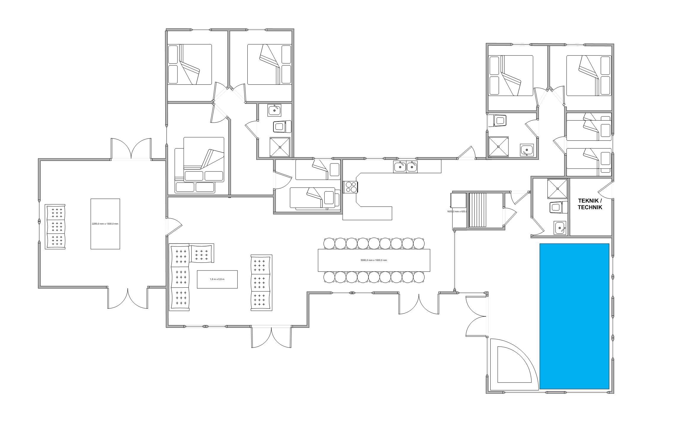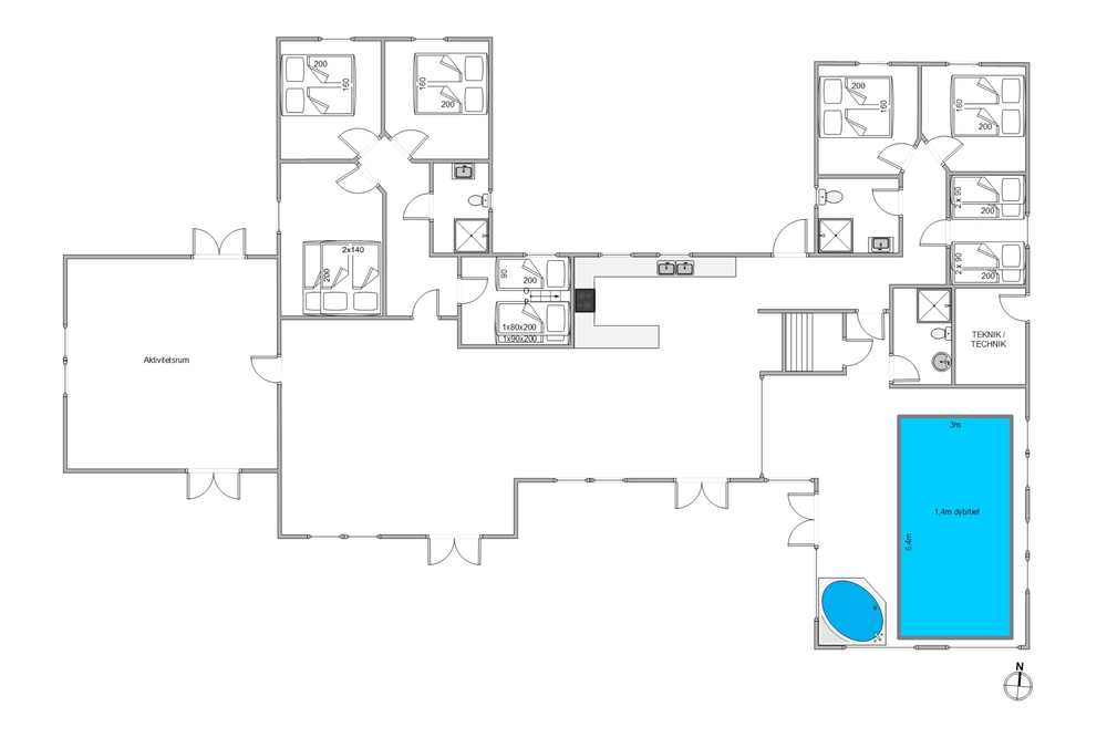 Det 268m² store aktivitets- og poolhus på Frans Julius Vej 50, kan byde op til 18 glade feriegæster velkommen. Feriehuset er indrettet med to forskellige soveafdelinger, hvor den ene afdeling har fire soveværelser og et badeværelse, og den anden afdeling har tre soveværelser og et badeværelse. Hvis I søger et tilflugtssted hvor hele familien kan samles eller blot en afslappende pause, så vil dette sommerhus i Søndervig leve op til forventningerne.