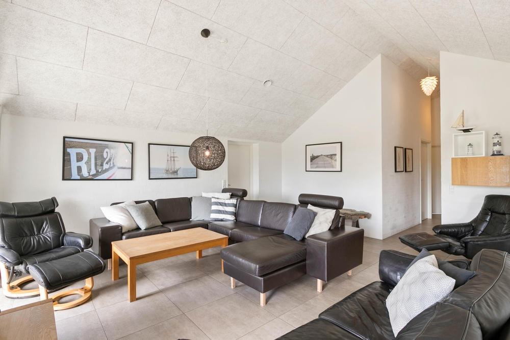 Feriehuset der er opført i 2016 er opført i moderne stil, med skønne troldtektslofter der sikrer en god akoustik og indemiljø. Igennem hele feriehuset går de praktiske klinker igen, hvilket gør det nemt at støvsuge og vaske gulvet.