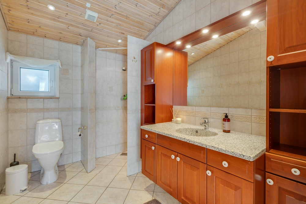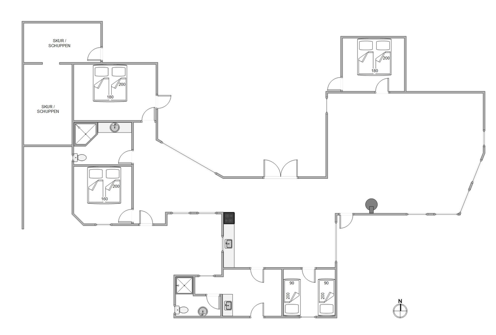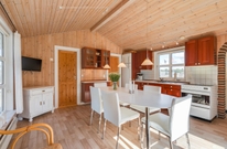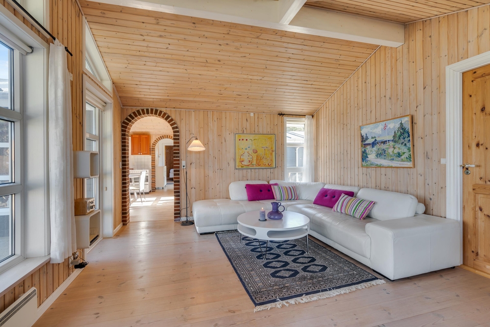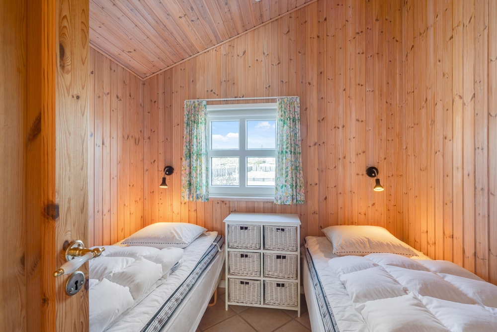Feriehuset rummer 4 soverum med plads til 6. Der er to badeværelser med gulvvarme i huset og både vaskemaskine og tørretumbler.