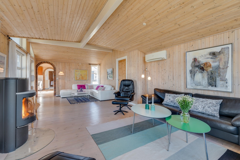 Sommerhuset har hele 3 fladskærms-tv, så der bliver ikke kamp om hvilket kanal, der skal vises. Ferieboligen er også udstyret med en moderne varmepumpe, der både kan opvarme og køle huset til den rette temperatur.