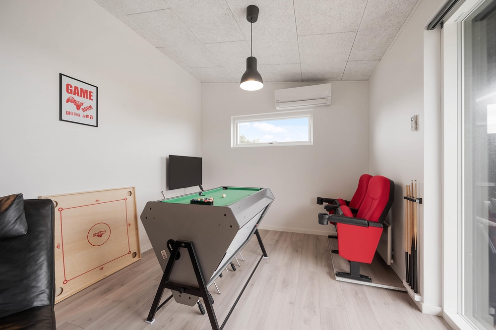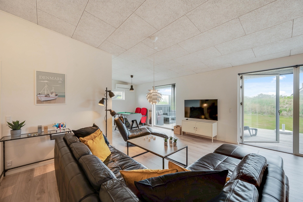 I sommerhuset på Fyrmarken 179 i Nr. Lyngvig har I alt til en dejlig ferie i det vestjyske. Sommerhuset har både spa, sauna, udesauna og udebruser, der sørger for afslapningen, mens bordfodboldbordet står for underholdningen. Det nybyggede (2021) sommerhus har plads til 8 personer og ligger kun 800 meter fra stranden.