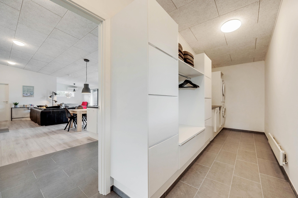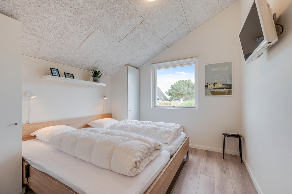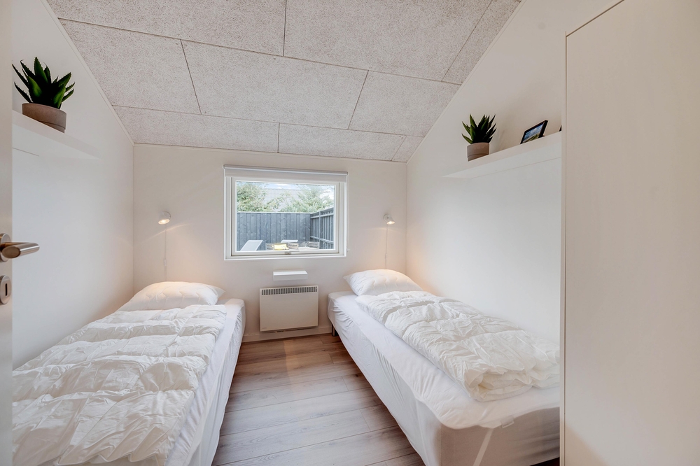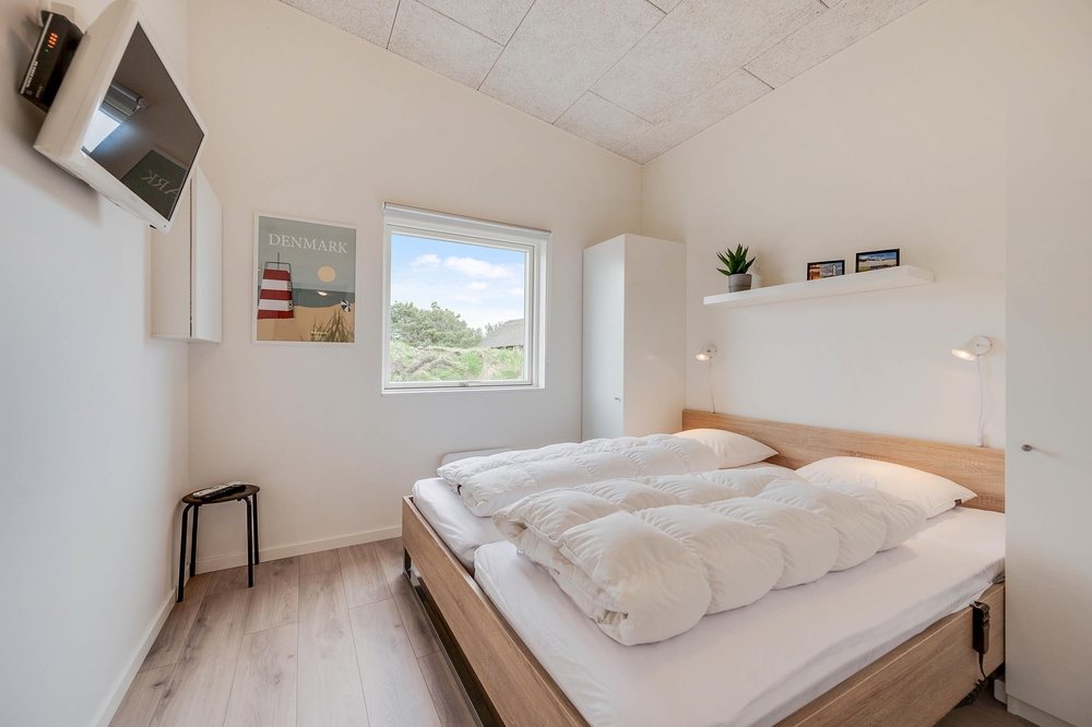 Det i 2021 byggede sommerhus har 4 soveværelser ? 2 med dobbeltseng, 1 med enkeltsenge og 1 med køjeseng. Feriehuset har opvaskemaskine i køkkenet samt vaskemaskine og tørretumbler i bryggerset. En energivenlig varmepumpe sørger for et godt indeklima til lave omkostninger.
