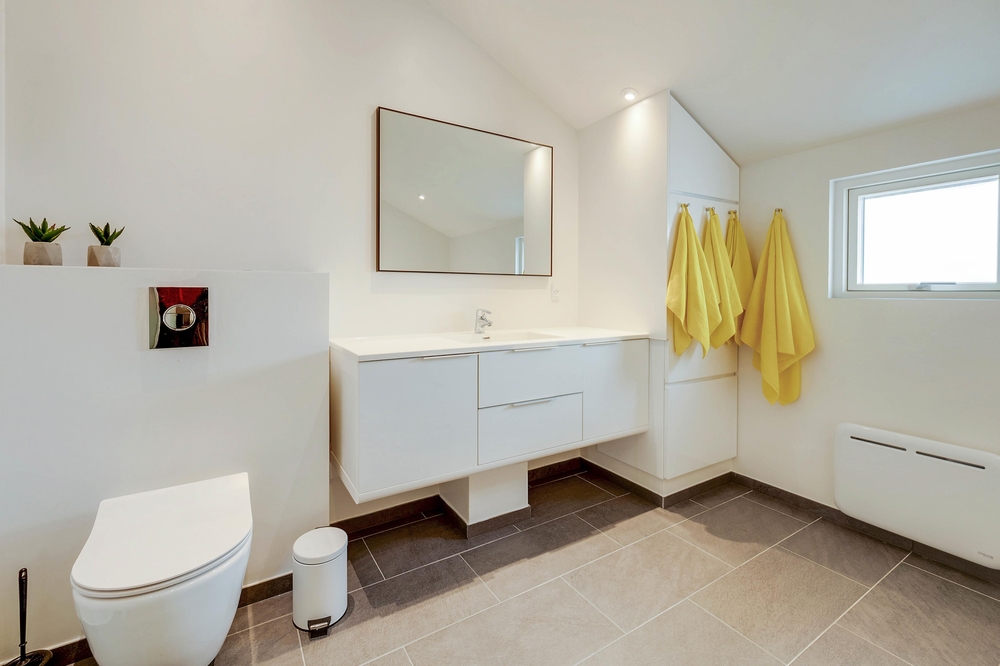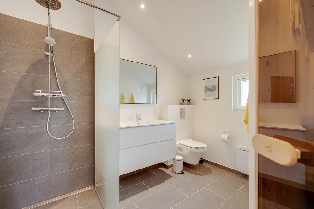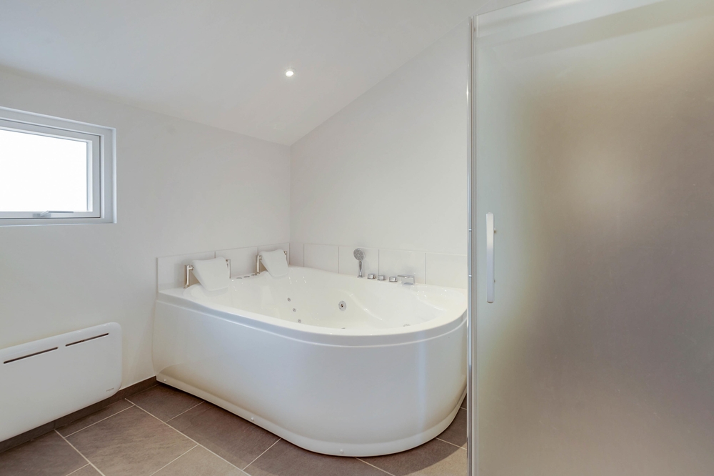 Når I trænger til afslapning, kan I søge mod sommerhusets 2 badeværelser. På det ene badeværelse står spaen klar til jer, mens I har adgang til en dejlig sauna fra det andet badeværelse. På begge badeværelser er der desuden gulvvarme, så ingen fryser fødderne fra morgenstunden.