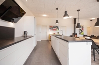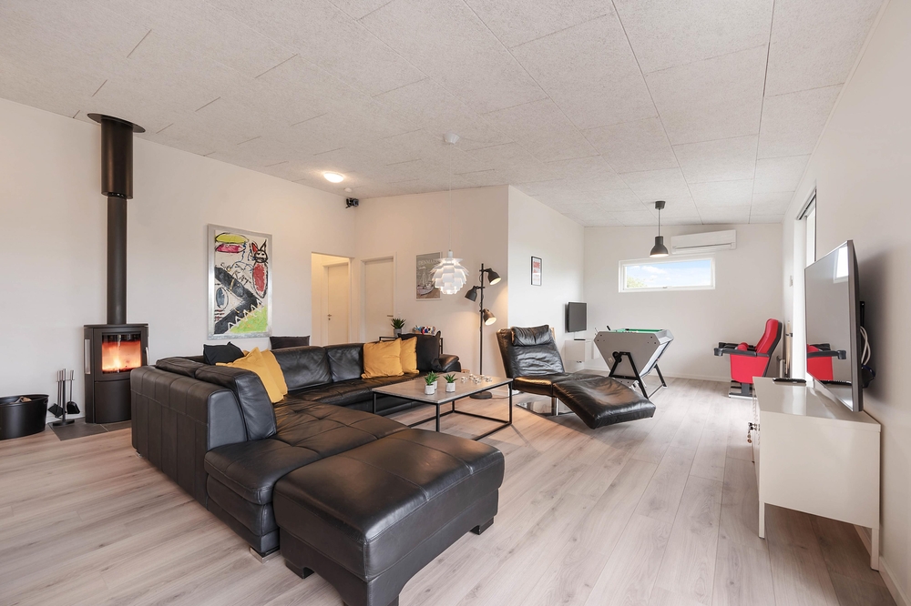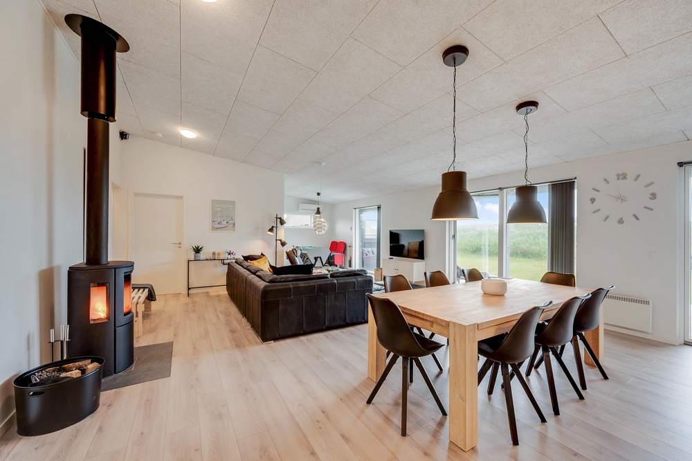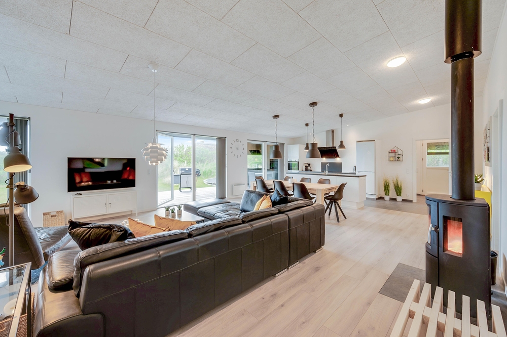 Hjertet i sommerhuset er alrummet, der forener køkken, spiseafdeling og stue. Alrummet byder på mange muligheder for hele familien. I køkkenet kan familiens kok give sig i kast med madlavningen, mens resten af feriebesætningen slapper af i sofaen, streamer film via Chromecasten i tv?et i eller tager et spil bordfodbold. Brændeovnen i rummet sætter prikken over i?et for stemningen.