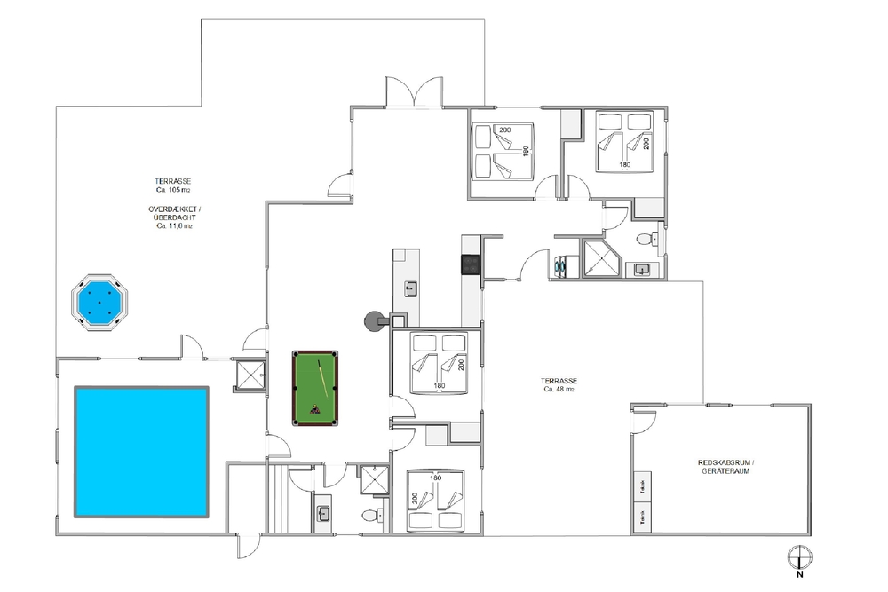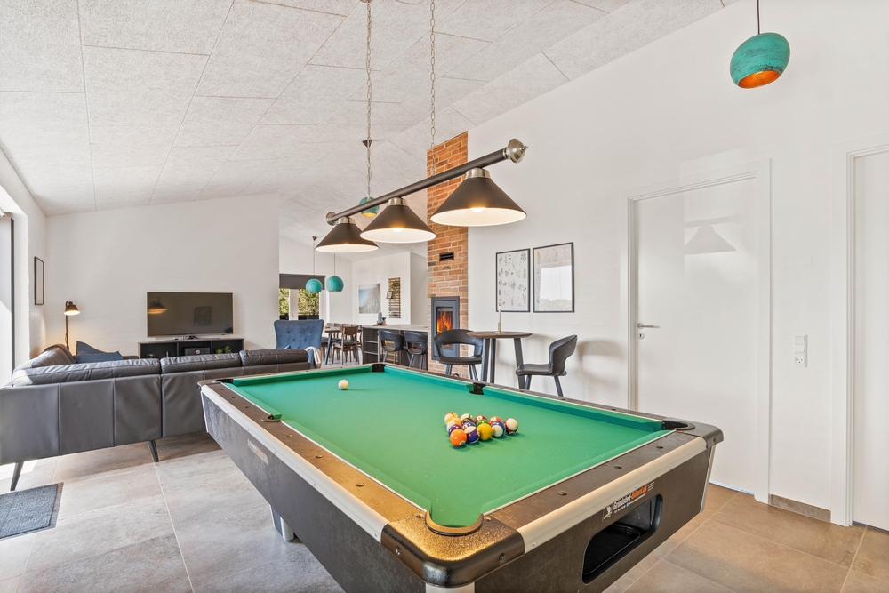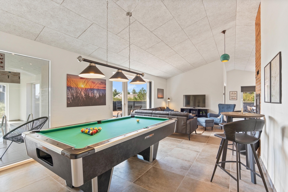 I kan blandt andet tilbringe mange sjove timer i sommerhusets 24 kvadratmeter store pool, hvor I kan svømme og bade i timevis. Derudover er der også et aktivitetsrum i feriehuset, hvor I kan spille billard, og her kan I også arrangere en aften med turnering for at finde ud af, hvem der er den bedste til billard.
