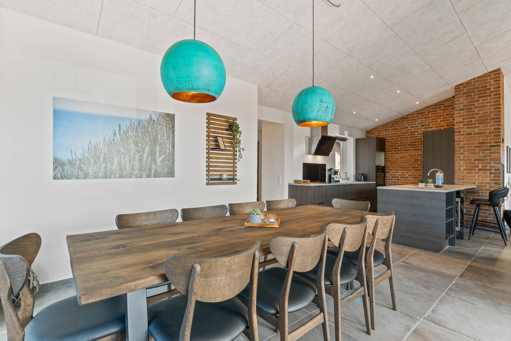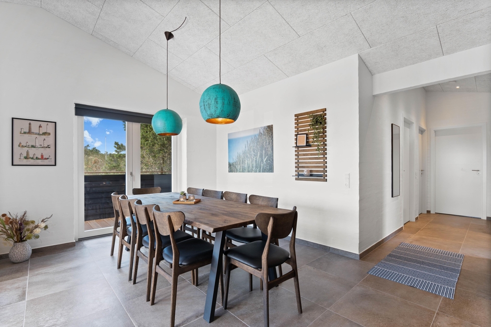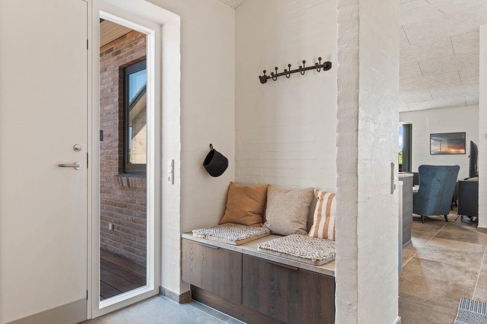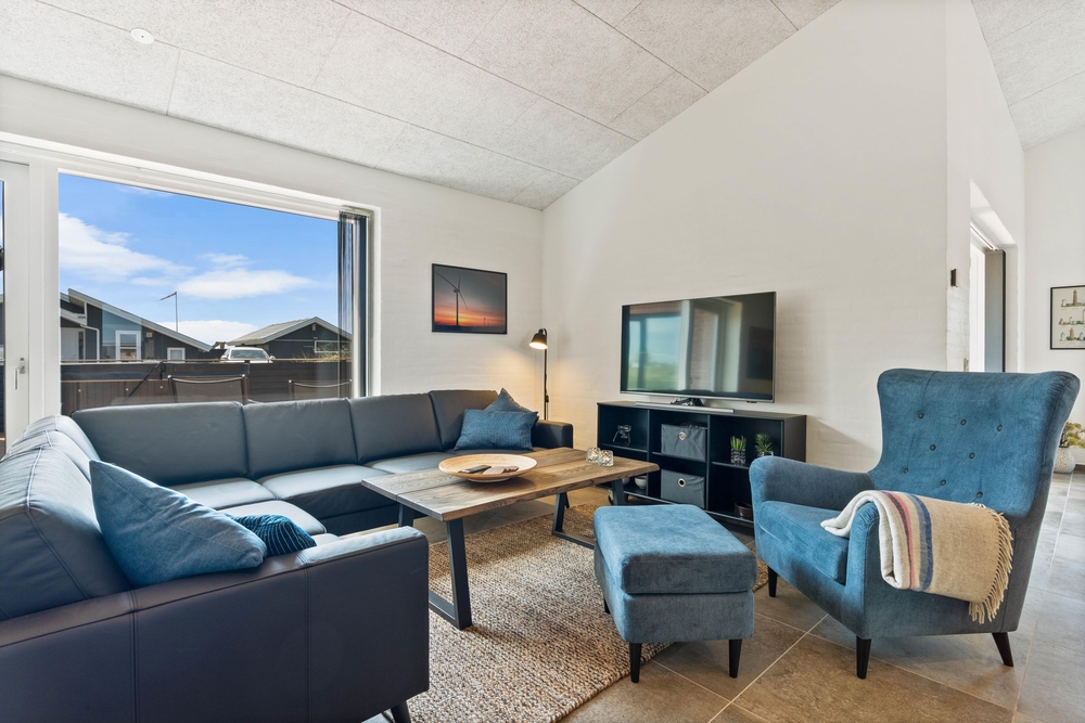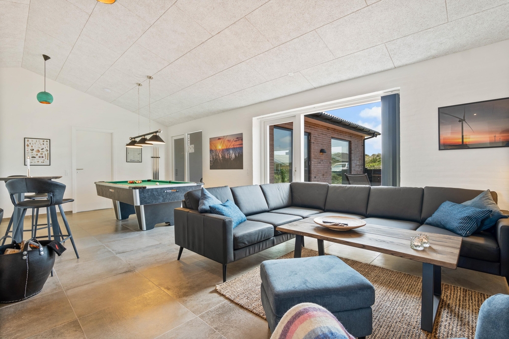 Sommerhuset er bygget i 2022, og når I træder indenfor, vil I straks blive mødt af den moderne indretning. I det 185 kvadratmeter store sommerhus udgør alrummet jeres samlingspunkt, hvor I kan samle hele ferieflokken til hyggelige stunder med film, mad og spil, mens brændeovnen knitrer i baggrunden.