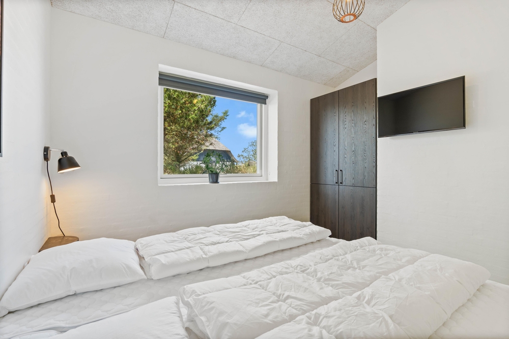 Når I har brugt al jeres energi for dagen, kan I bevæge jer mod sommerhusets 4 gode soveværelser. På hvert soveværelse venter jer en dobbeltseng, hvor I kan blive tanket op med ny energi til de næste feriedage. Med hele 2 badeværelser i feriehuset slipper I for kø fra morgenstunden.