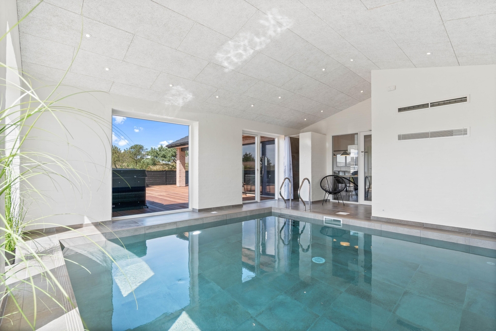 På Fyrmarken 247 i Nr. Lyngvig står dette moderne sommerhus klar til at byde op til 8 personer inden for til en ferie, der kommer til at være fyldt med afslapning og underholdning. I sommerhuset kan I tilbringe underholdende timer i pool og aktivitetsrum samt afslappende stunder i sauna og udespa. Sommerhuset ligger kun 700 meter fra Vesterhavet, og I er desuden hjerteligt velkomne til at have op til 2 hunde med på ferien. Sommerhuset har også ladestik til el-bil, så I har mulighed for at lade el-bilen op.