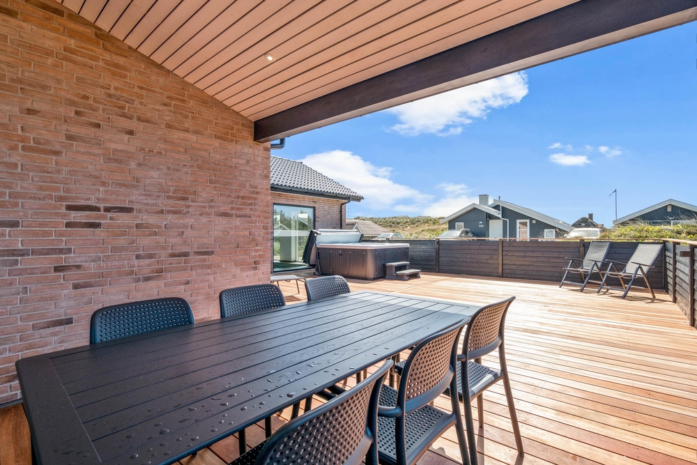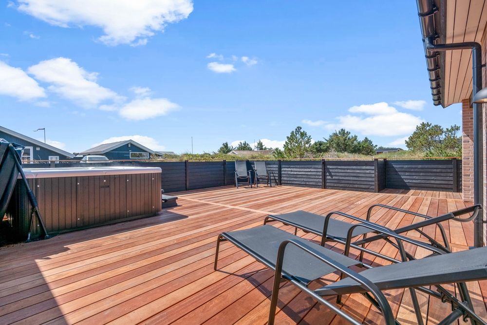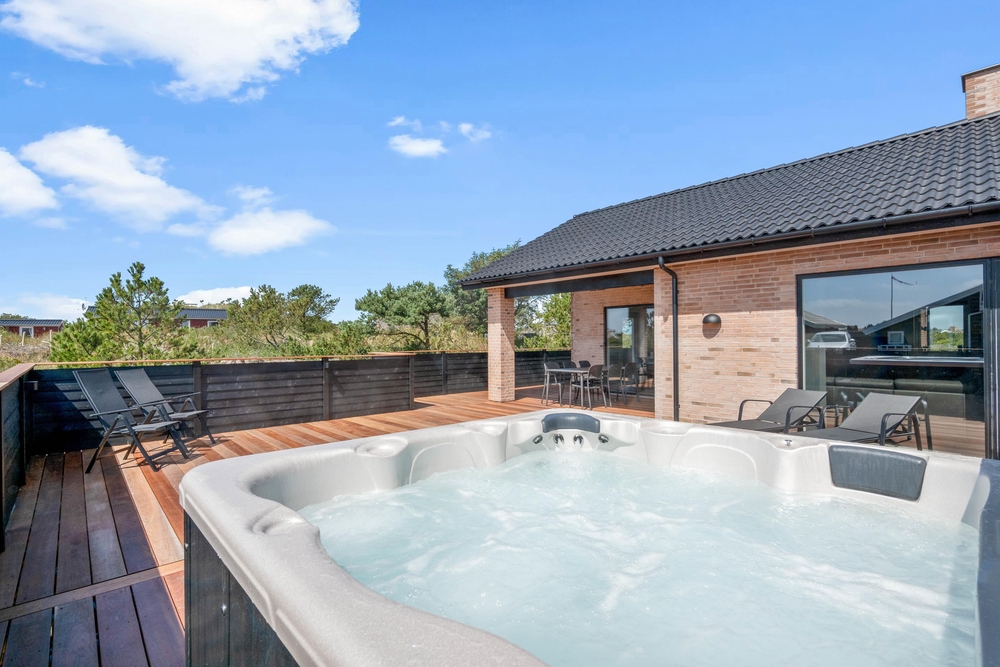 Derudover står der også en lækker udespa klar til jer på terrassen, hvor I kan slappe af i det boblende vand under åben himmel ? især om aftenen under stjernehimmelen er det noget helt særligt at sidde i udespaen.