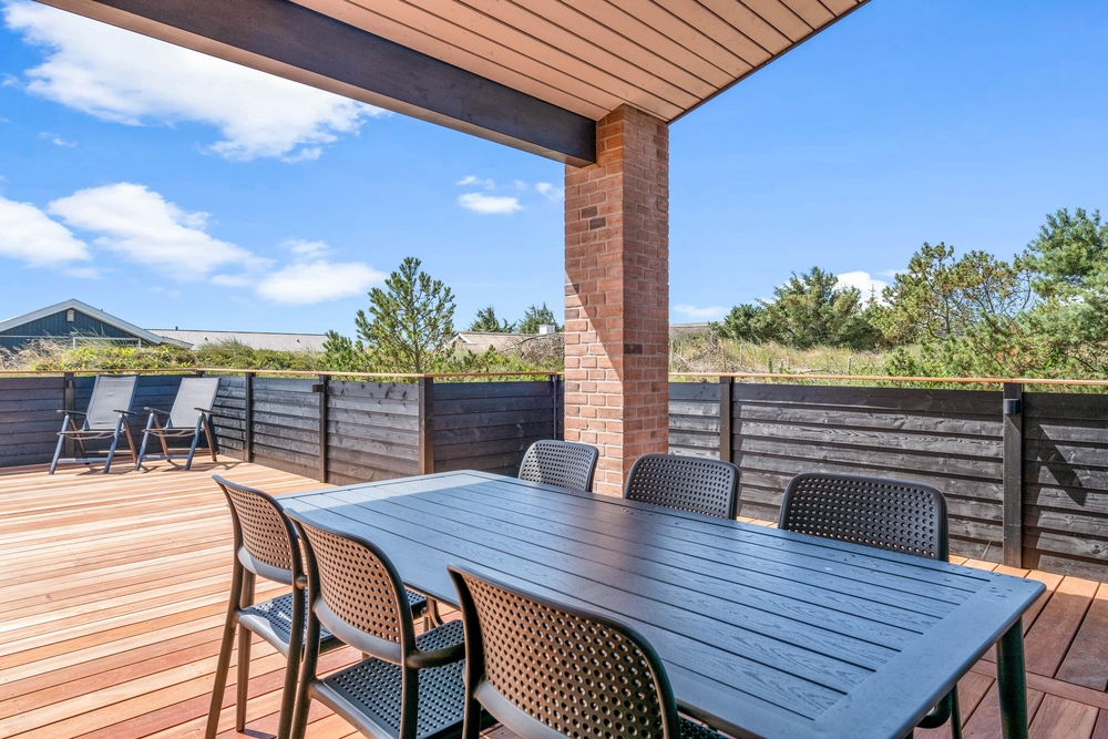 På sommerhusets lækre terrasse kan I tilbringe de solrige feriedage, hvor I kan læne jer tilbage i havemøbler og liggestole på en god plads i solen. På terrassen står gasgrillen også klar til, at I kan tilberede lækre grillmiddage på de lune ferieaftener.
