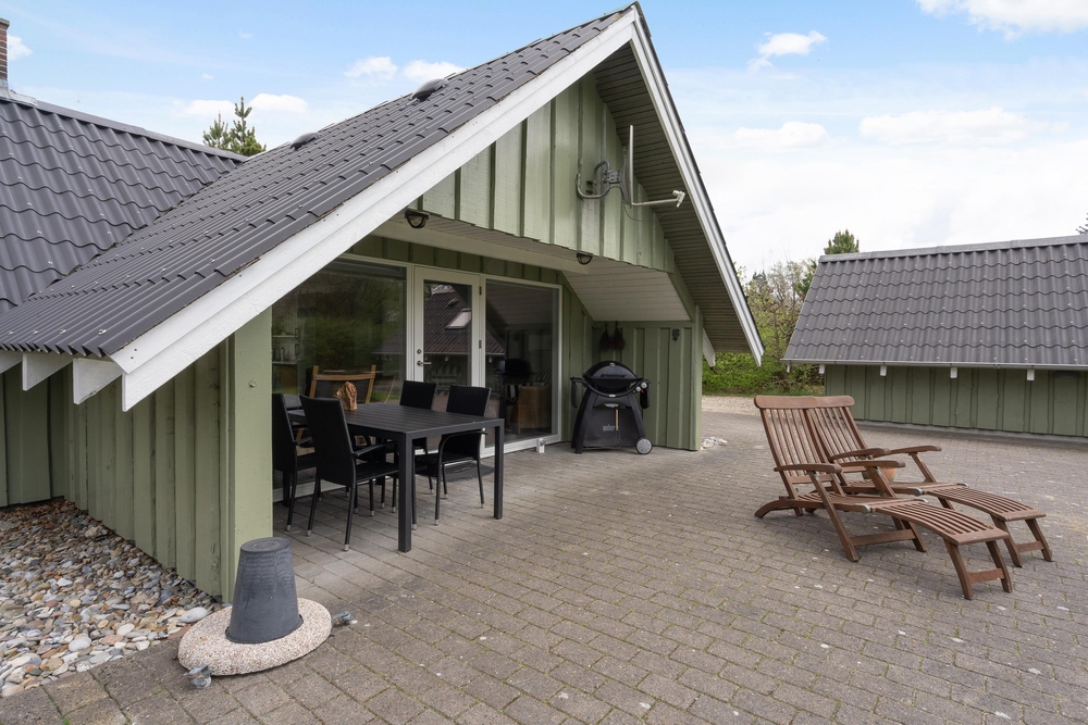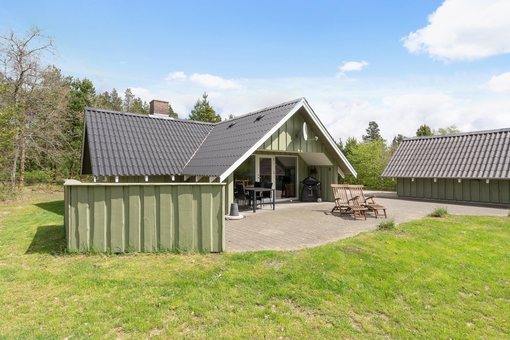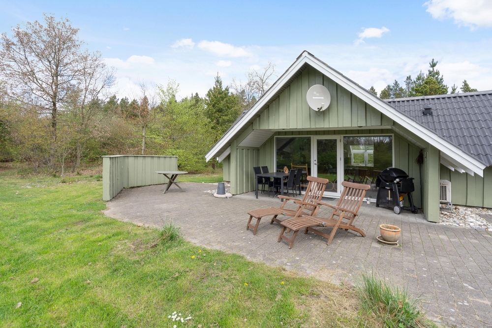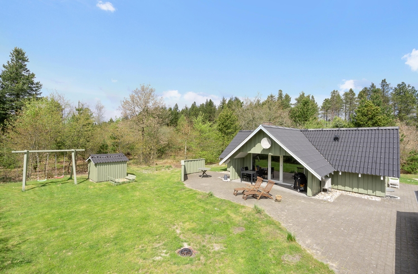 Fra stuen kommer I ud på den delvist overdækkede terrasse, hvor havemøblerne og grillen står klar til jer. Her kan I samle familien til hyggelige grillmiddage eller bare slappe af med en god bog og en kop kaffe, mens solens stråler finder vej gennem de omkringliggende træer. På de solrige dage kan I nyde varmen på terrassen i den flotte natur, mens børnene leger i haven med både gyngestativ og sandkasse.