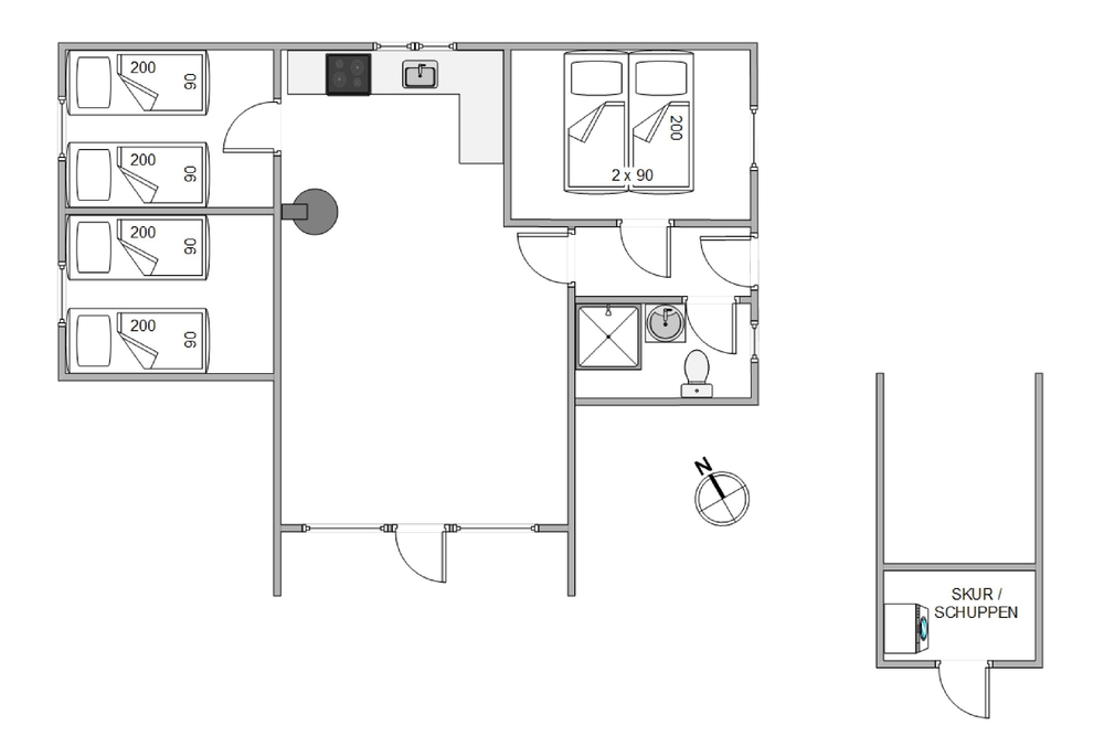 Haven er en skøn oase, der indbyder til både leg og afslapning i den friske luft. Et ekstra highlight er carporten, hvor I kan parkere bilen, hvilket sikrer jer nem og bekvem adgang til sommerhuset, uanset vejret. Det udendørs område er designet til at maksimere jeres afslapning og fornøjelse, og det giver jer mulighed for at nyde det smukke landskab, der omgiver sommerhuset i Houstrup.