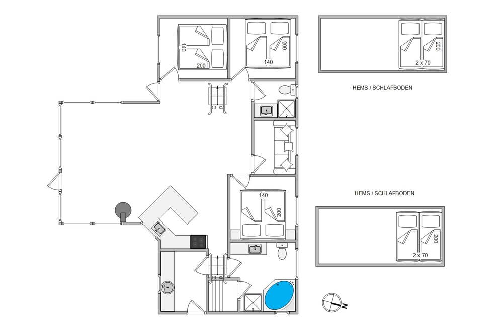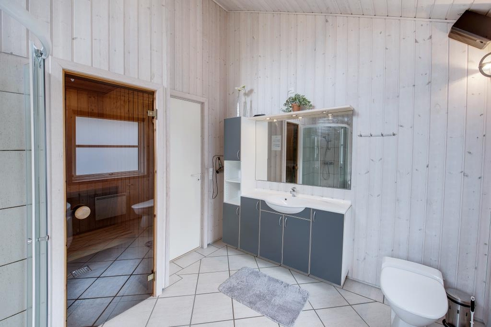 I det store badeværelse finder I desuden både en sauna og et spabad, så I kan nyde ferien ekstra meget. Her kan I få varmen igen efter en lang gåtur ude i den friske luft eller en udflugt til den lange skønne sandstrand.