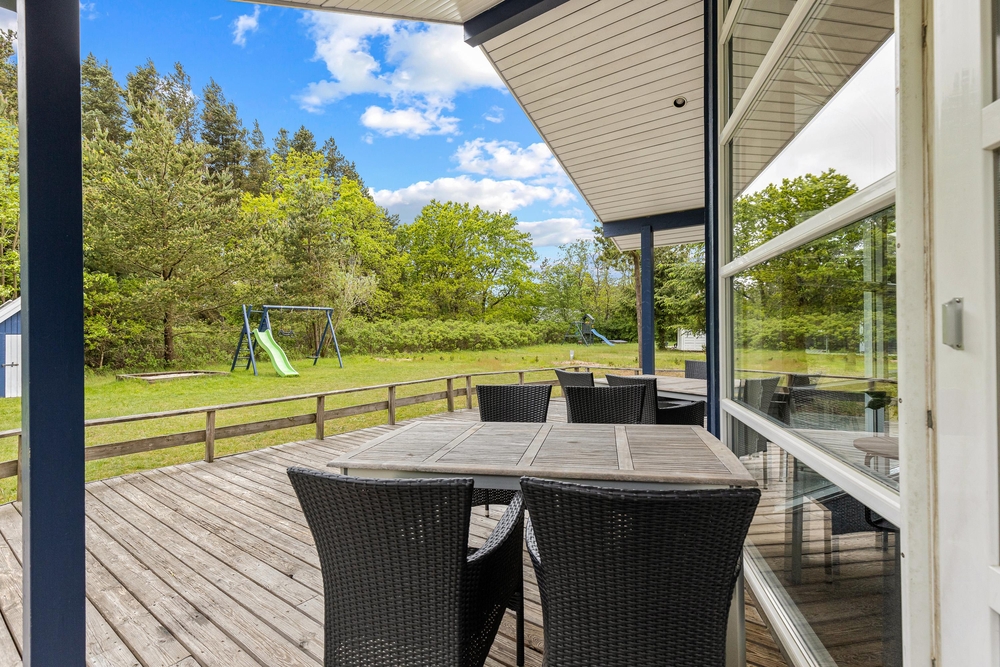 Ikke-ryger huset ligger på en åben naturgrund med en stor, dejlig græsplæne med plads til boldspil og leg for både hund, børn og selvfølgelig også barnlige sjæle.