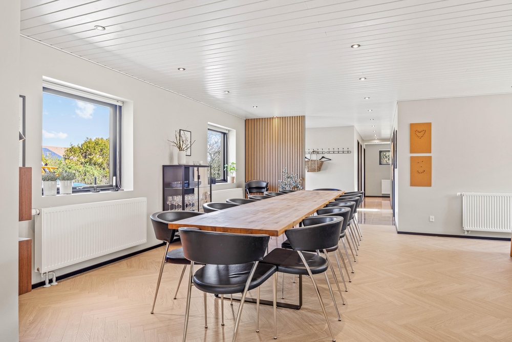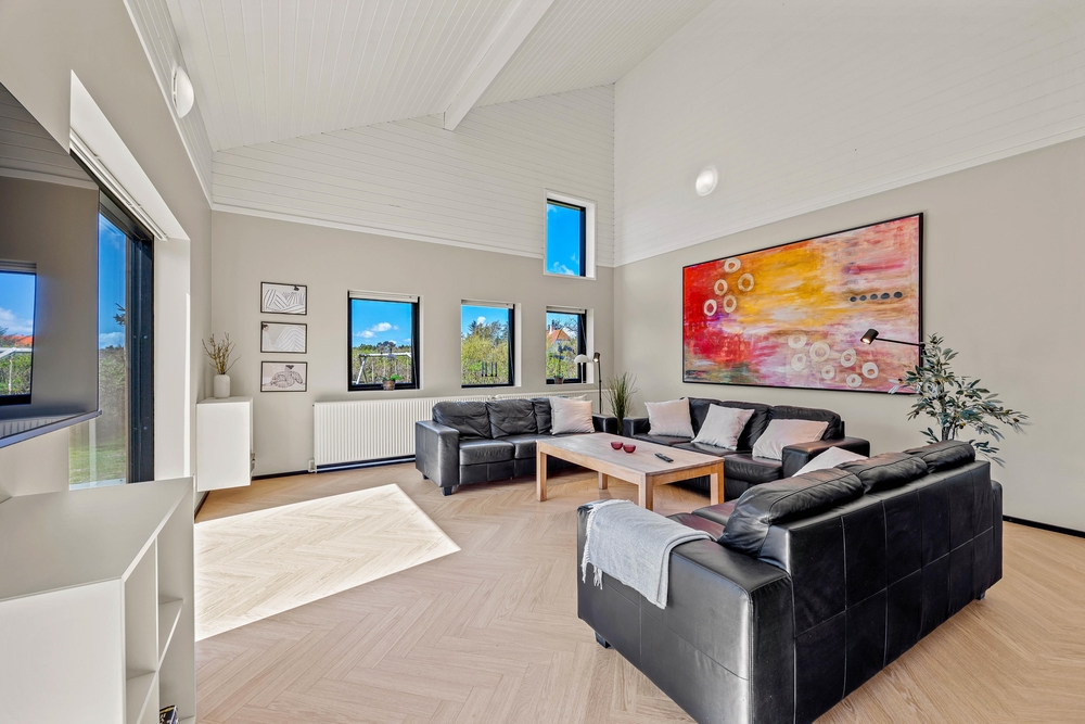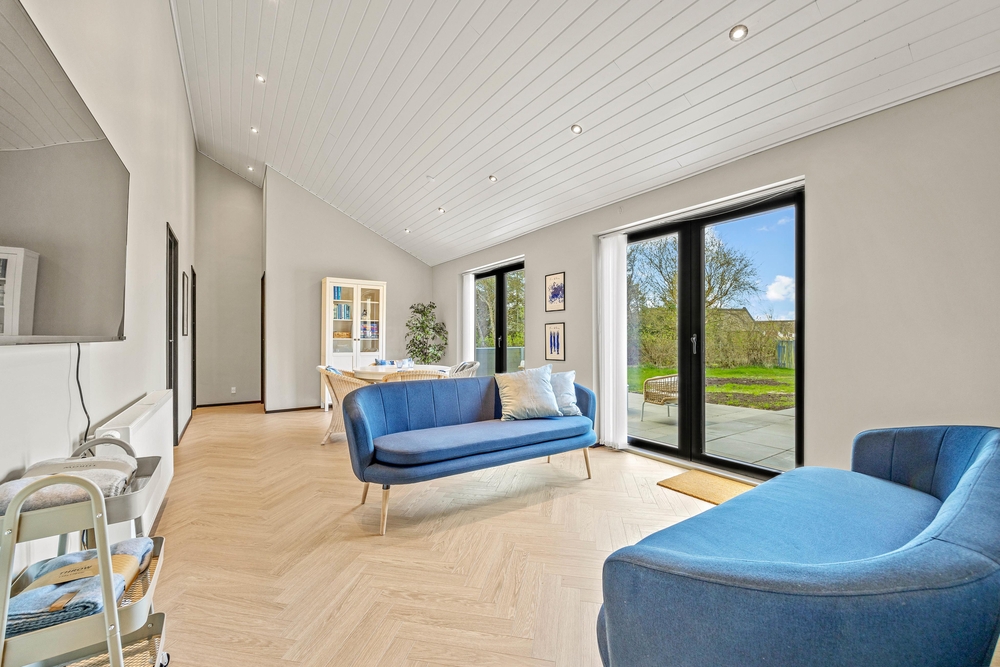 I det 313 kvadratmeter store sommerhus er der god plads til alle feriegæster. Om aftenen, når I er ved at være løbet tør for energi, er der hele 7 soveværelser, der alle er indrettet med dobbeltsenge, som I kan søge mod, så I kan få samlet ny energi.