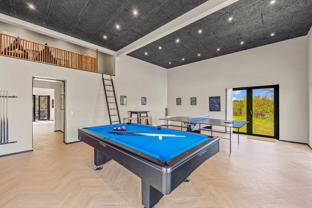 Et af sommerhusets højdepunkter er aktivitetsrummet, hvor I helt sikkert kommer til at tilbringe mange sjove timer sammen i løbet af ferien. Her kan I både spille billard og bordtennis, og I kan også afholde en spilaften med turneringer for at finde ud af, hvem der er den bedste til billard og bordtennis.