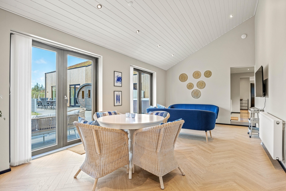 Hvis I er flere familier eller en stor vennegruppe, der vil holde en skøn ferie sammen, så bør I overveje at holde jeres ferie i dette femstjernede sommerhus på Fyrvej 23 i Blåvand. Sommerhuset, der er renoveret i 2022, byder op til 14 personer inden for til en ferie, der kommer til at stå på sjove timer i aktivitetsrummet med billard og bordtennis samt afslappende stunder i udesaunaen og udespaen.