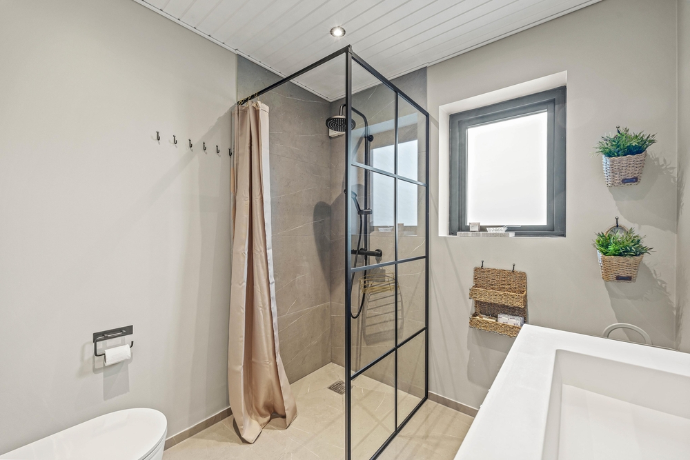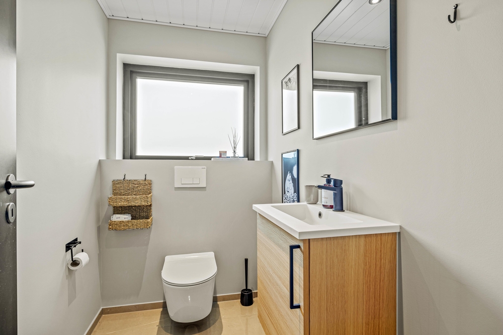 I sommerhuset slipper I desuden for at bekymre jer om at stå i kø og fryse tæerne fra morgenstunden. Her har I nemlig 2 badeværelser og 1 gæstetoilet, der alle er udstyret med gulvvarme. Foruden gulvvarmen på badeværelserne er der også en energivenlig varmepumpe i feriehuset, som sørger for gode indendørs temperaturer.