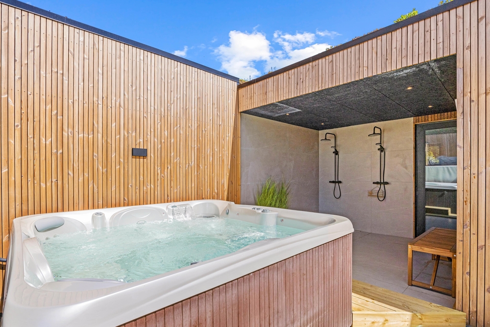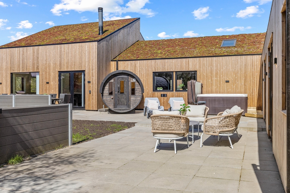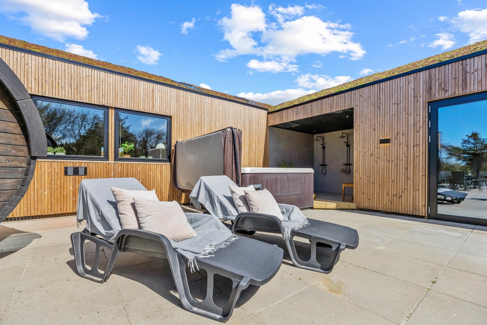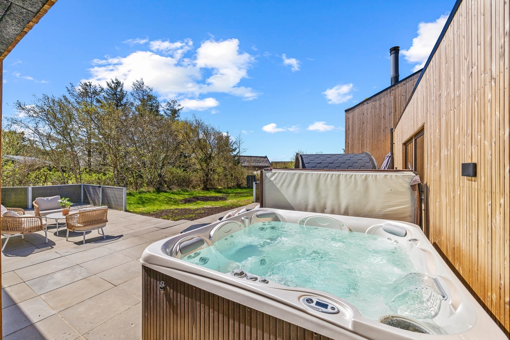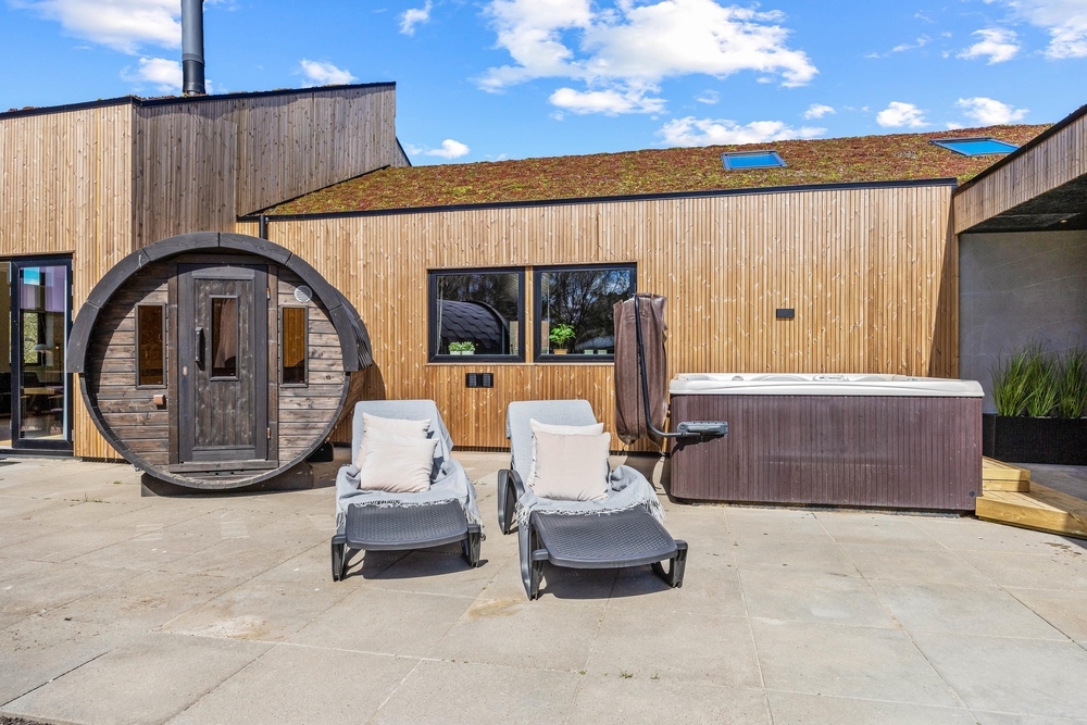 Sommerhusets udeområde byder desuden på flere skønne højdepunkter. Her venter jer nemlig en udesauna og en udespa, der står klar til at forkæle jer med masser af afslapning. Så her kan I altså bare sætte jer godt til rette og slappe helt af i skønne omgivelser. Fra 1. april til 31. oktober er der desuden en udebruser, I kan blive skyllet under.