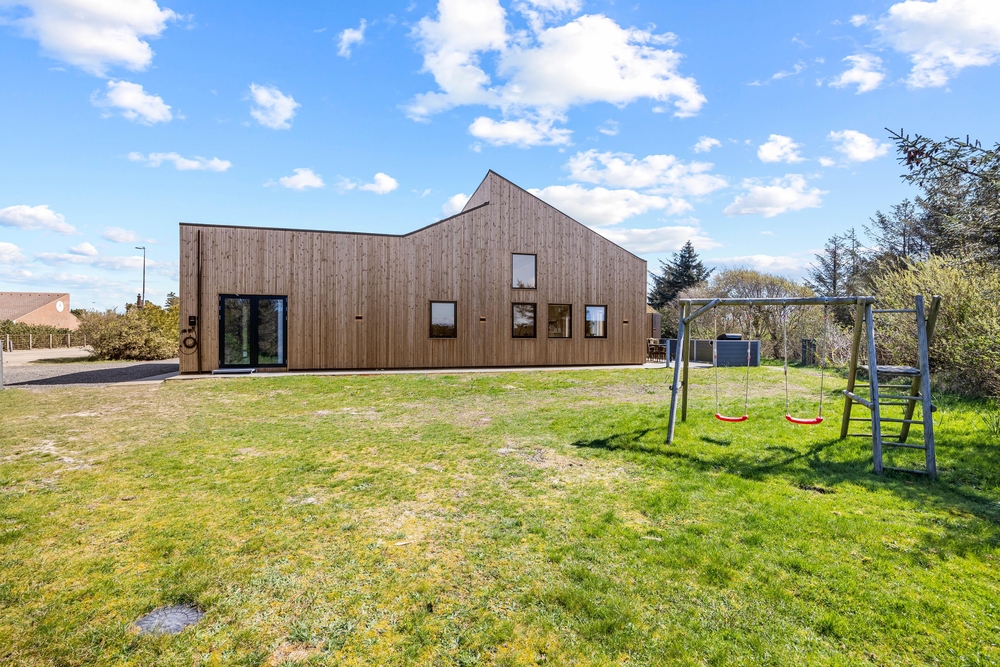Mens I slapper af og nyder ferien fra terrassen, udespaen eller udesaunaen, kan børnene lege i haven. Her er der også både en sandkasse og et gyngestativ, de kan få glæde af.