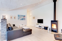 Sommerhusets hjerte er spiseafdelingen samt det store moderne køkken, der er velindrettet og blandt andet udstyret med en quookervandhane. Lyst og lækkert indrettet med brændeovn og komfortable møbler er det nemt at føle sig godt tilpas her. Saml familien til en hyggeaften med billard, en dejlig middag og kortspil, imens ilden knitrer i brændeovnen og mørket sænker sig udenfor.