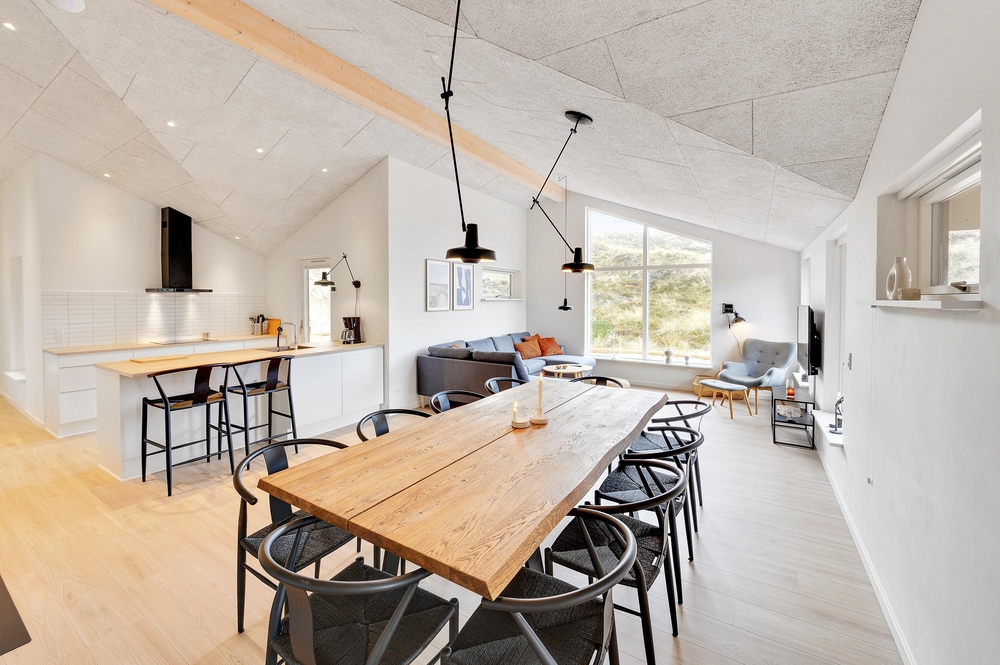 Det flotte aktivitetshus i Nr. Lyngvig rummer med sine 120 kvadratmeter plads til 8 gæster (og 2 hunde). Feriehuset er opført i 2020, og den moderne og åbne indretning med lyse farver og højt til loftet sætter den helt rigtige ferieatmosfære fra første øjeblik.