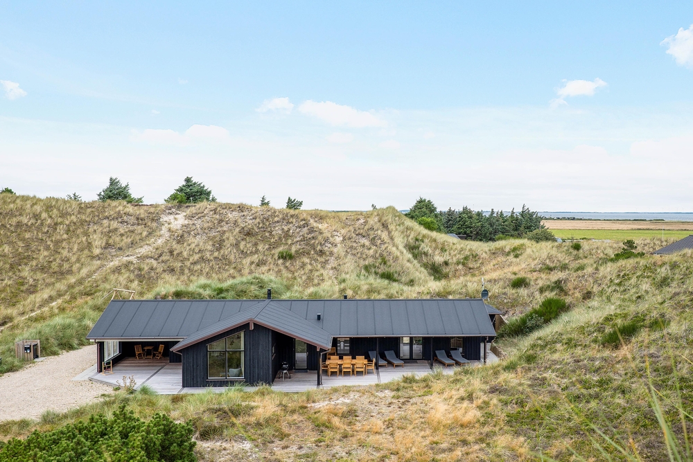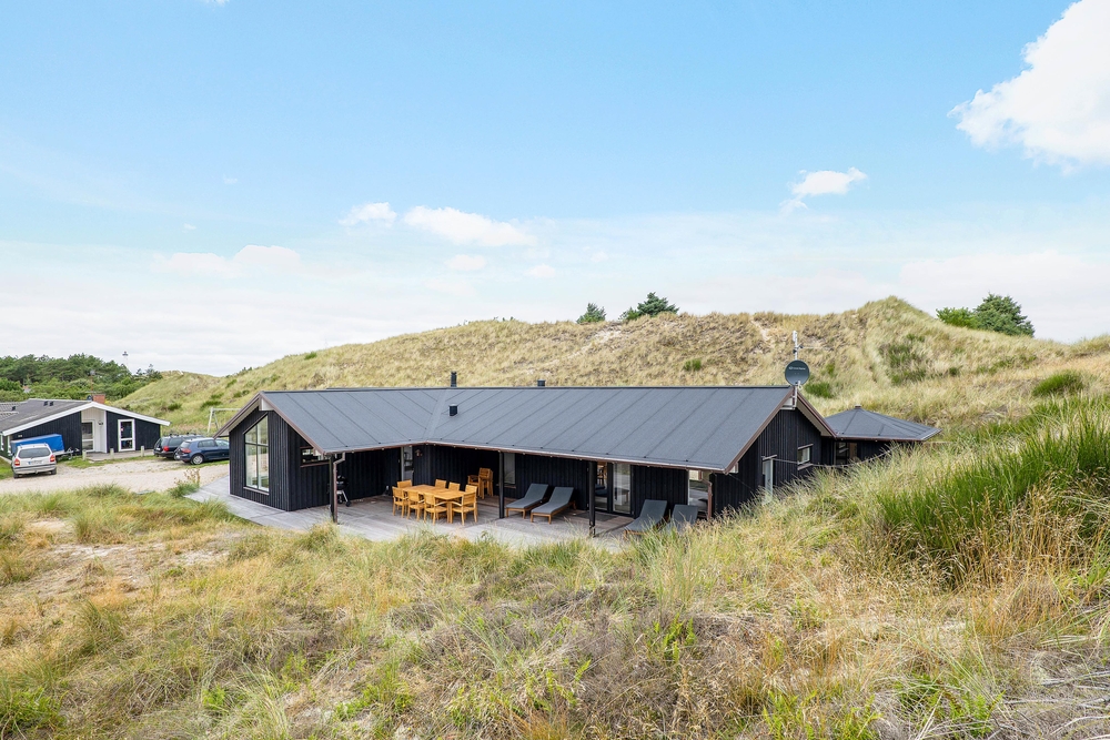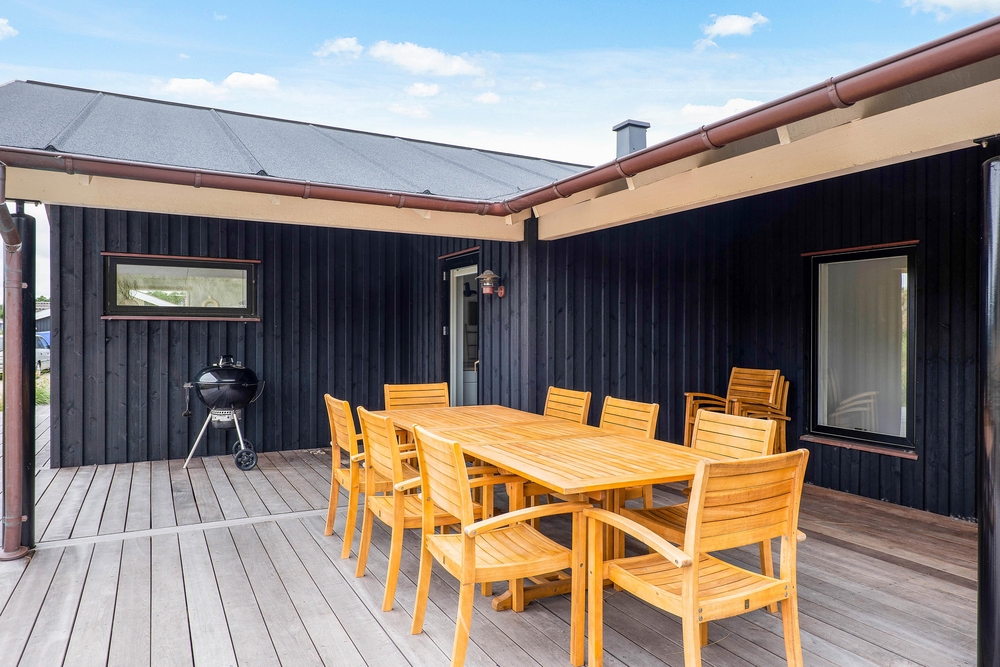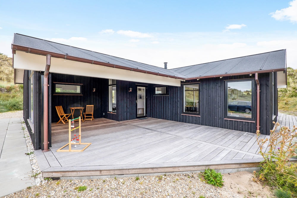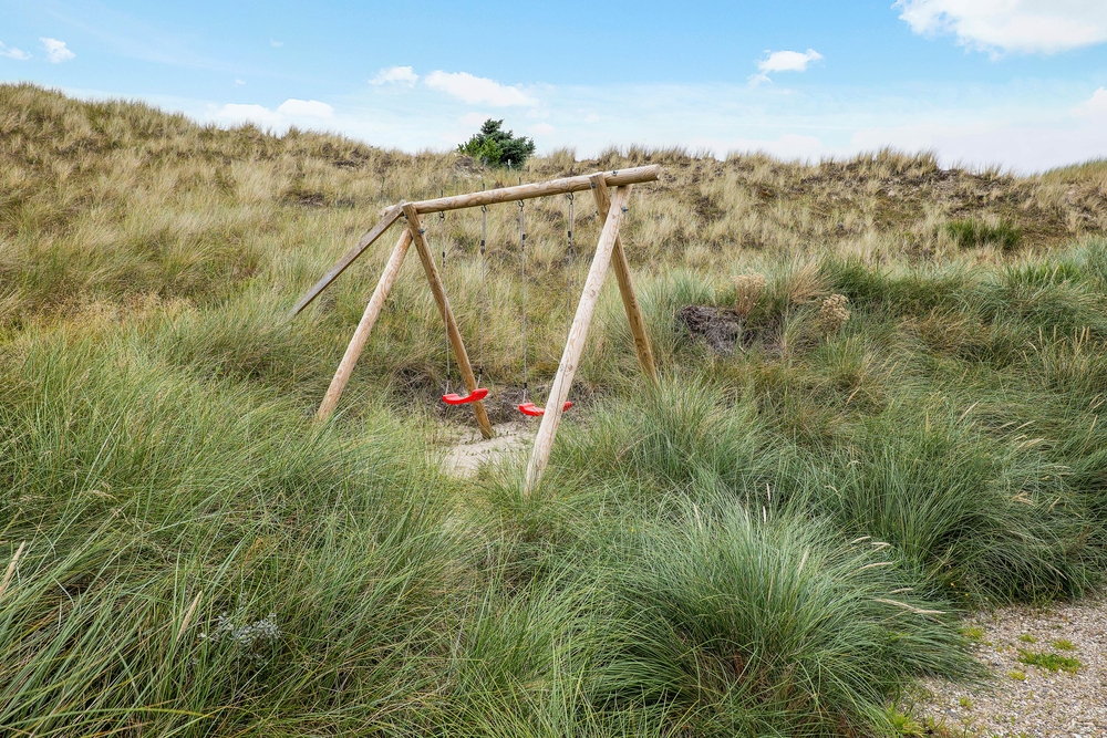 Feriehuset i Nr. Lyngvig har en skøn beliggenhed med lyngklædt klitlandskab til alle sider og høje klitbanker, der afskærmer jer godt, så I på ugeneret vis kan nyde den friske luft på terrassen. Havemøbler, liggestole og grill står klar, så de gode solskinsdage kan udnyttes i fulde drag. Også på de mindre solrige dage er det perfekt, at en del af terrrassen er overdækket, så grillmaden kan nydes i al slags vejr.