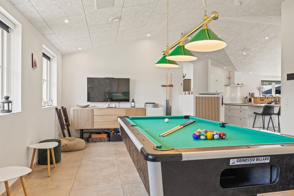 Den aktive familie vil befinde sig godt på Gl. Skolevej 14. Sommerhuset er indrettet med en aktivitetsafdeling med billardbord, bordtennis og dart, hvor hele familien kan samles til en hyggelig turnering. Der er PlayStation og Nintendo Wii ? et sikkert hit blandt både børn og barnlige sjæle!