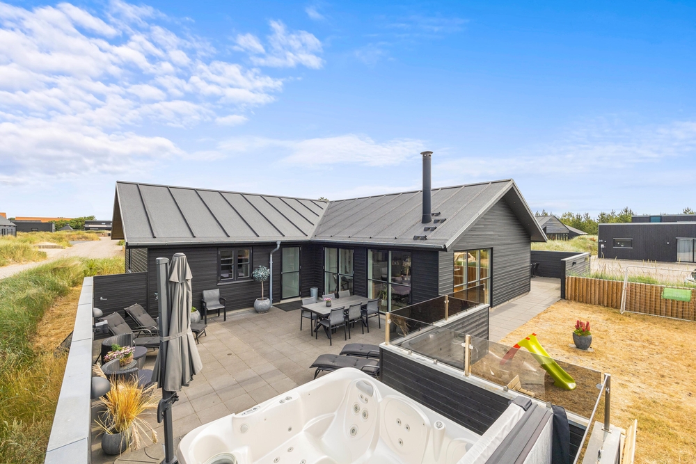 Det nyligt opførte aktivitetshus i et nybygget område i Blåvand rummer plads til 8 personer og er et helt ideelt valg til en storslået familieferie. Der er god plads til alle i de rummelige og åbne omgivelser, som er stilfuldt indrettet med lyse farver og højt til loftet.