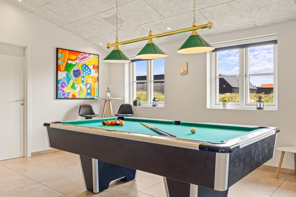 Er I på udkig efter et sommerhus til den næste familieferie? Og vil I gerne holde en ferie lidt ud over det sædvanlige? Så er dette moderne aktivitetshus fra 2018 et oplagt valg! Her er plads til hele familien, og huset er indrettet med både sauna, aktivitetsrum med billard, bordtennis og dart og en lukket terrasse med udendørs spabad.