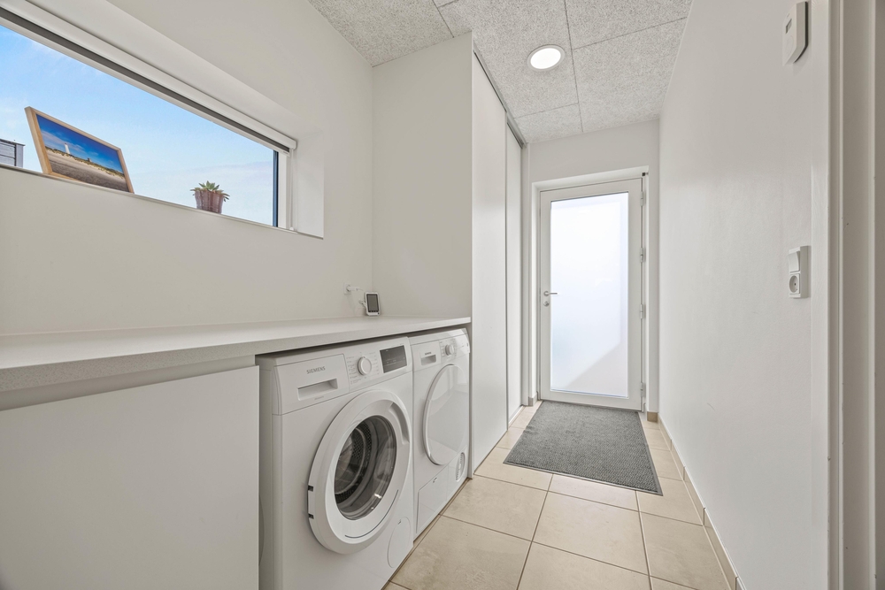 Feriehuset er udstyret med alle praktiske nødvendigheder, og I kommer ikke til at mangle noget. Med opvaskemaskine, vaskemaskine og tørretumbler er de huslige pligter hurtigt overstået, og I kan streame film og serier via den hurtige internetforbindelse. Den lukkede terrasse er udstyret med gode havemøbler, liggestole og en gasgrill. Markisen må ikke benyttes.