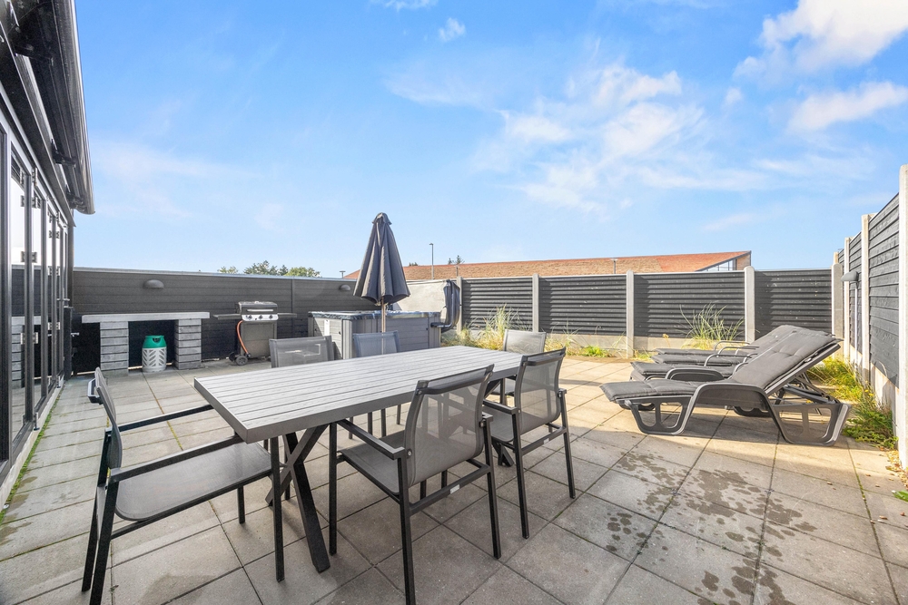 Sætter I pris på stilfulde omgivelser, og vil I gerne bo tæt på centrum? Så er dette femstjernede rækkehus i Blåvand måske jeres næste feriematrikel. Her får I en luksuriøs indretning, 3 badeværelser, en infrarød sauna og en lukket terrasse med udendørs spabad ? kun 500 meter fra Blåvands bymidte.