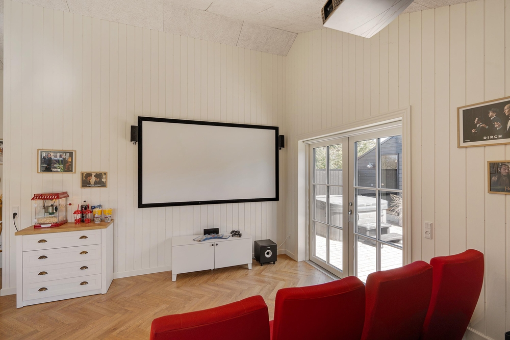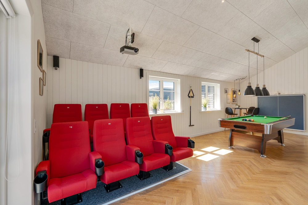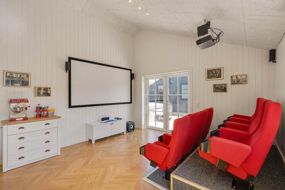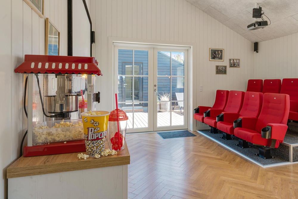 Er I ikke så meget til sport og spil, har I også jeres helt egen biograf med surroundsound. Rul gardinerne ned, sæt jer til rette i de behagelige biografsæder og tilbring et par hyggelige timer sammen. I feriehuset er der både Apple TV og Chromecast, så I nemt kan se lige hvad I vil, samt PlayStation.