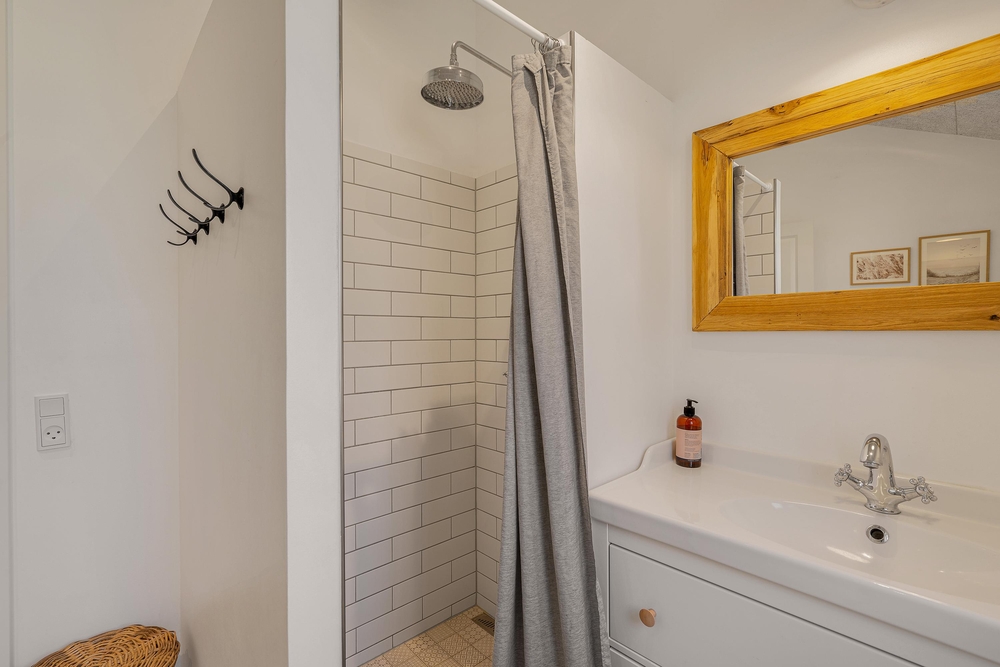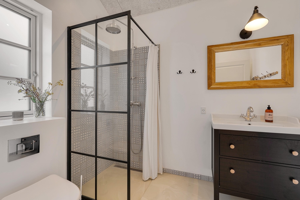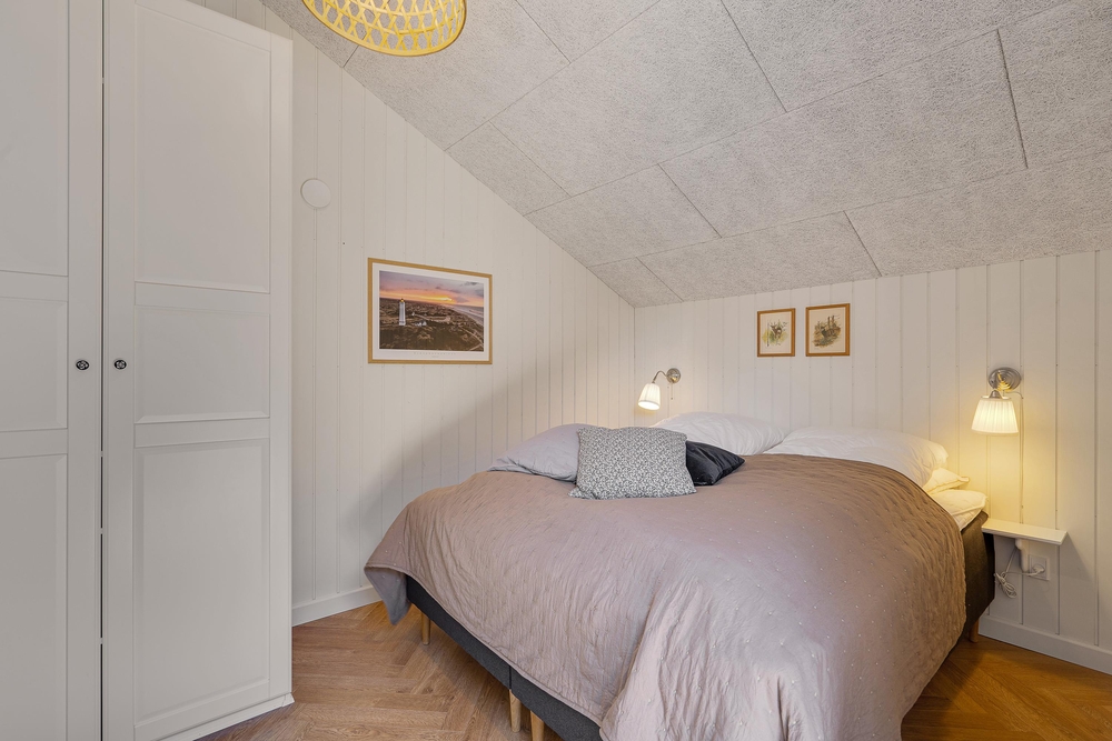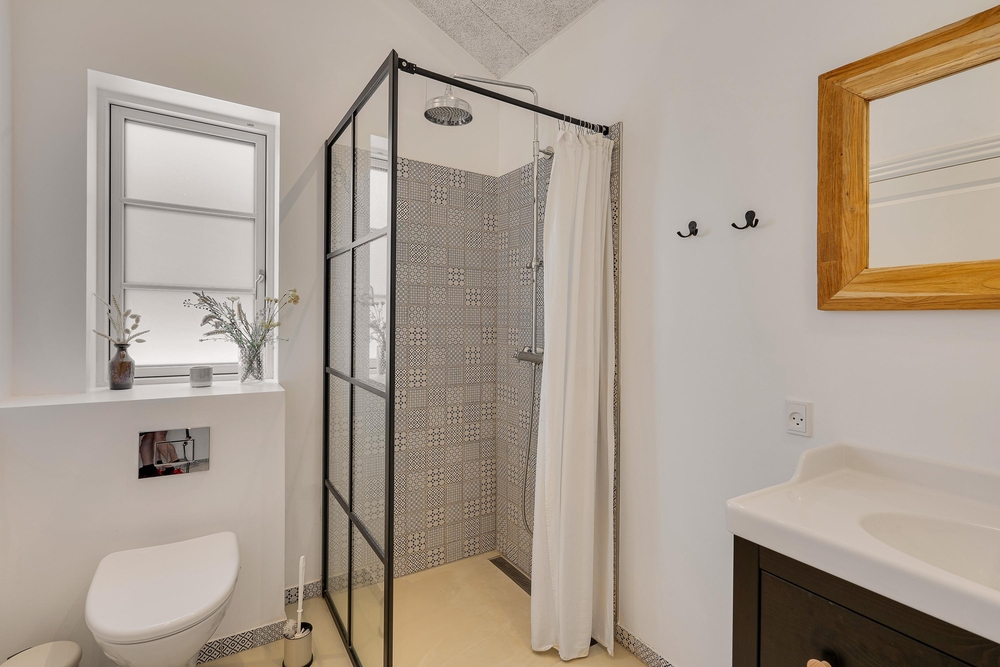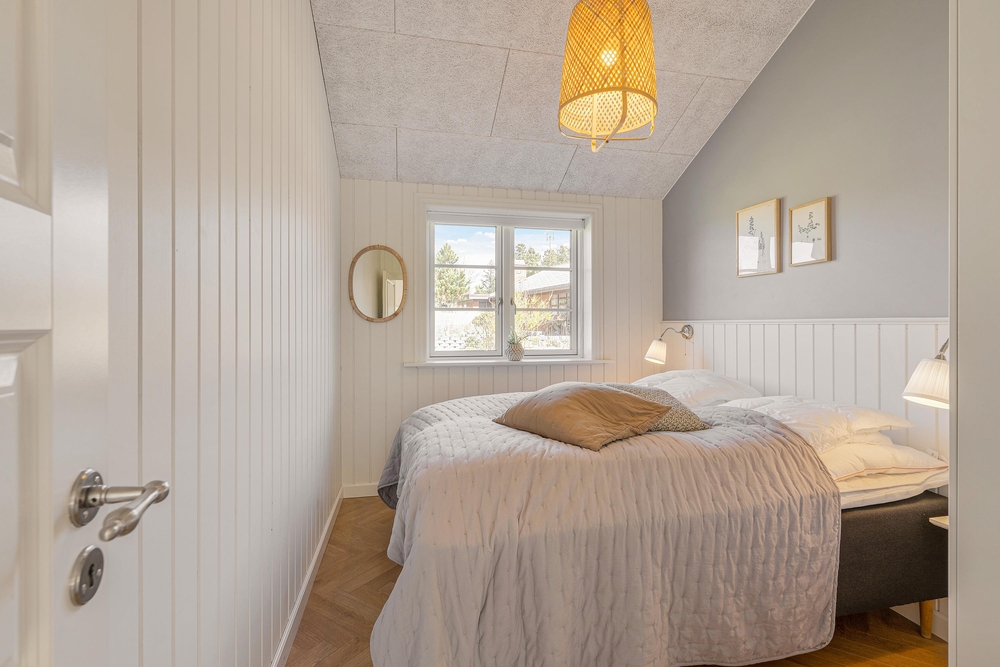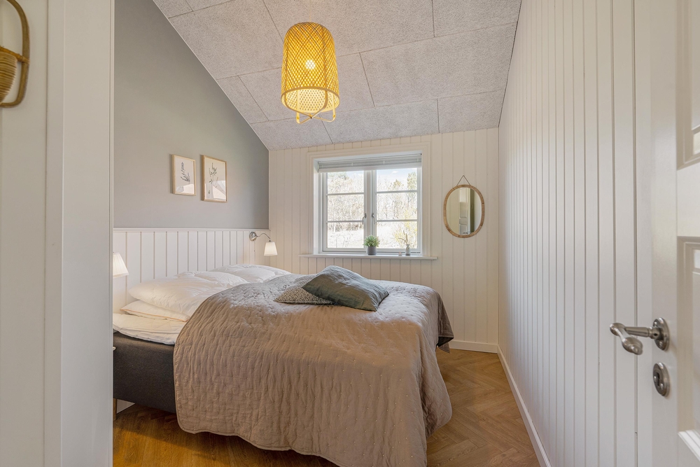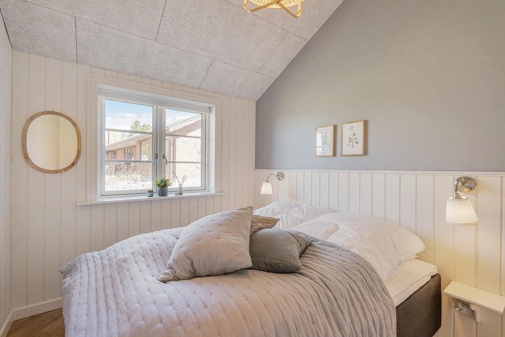 Rent praktisk rummer feriehuset 6 soveværelser med dobbeltsenge og 3 badeværelser ? hvoraf et er med puslebord og badekar, så I til hver en tid slipper for kø om morgenen. Tøjvask er også hurtigt klaret med en kombineret vaskemaskine og tørretumbler. Samtidig er sommerhuset også energibesparende, da der er gulvvarme i alle rum.