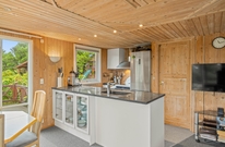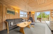 Sommerhuset på Gøgevej 38 har en skøn beliggenhed og er indbegrebet af klassisk sommerhus ? indrettet hyggeligt og med masser af træ. Opholdsrummet er sommerhusets hjerterum. Her er plads til nærvær og dejlige stunder med hele familien ? uanset om det gælder fælles madlavning eller hyggelige brætspilsaftener. I sofaen kan der slappes af med en god film, og til de køligere aftener kan brændeovnen sprede varme og glæde i hele rummet.
